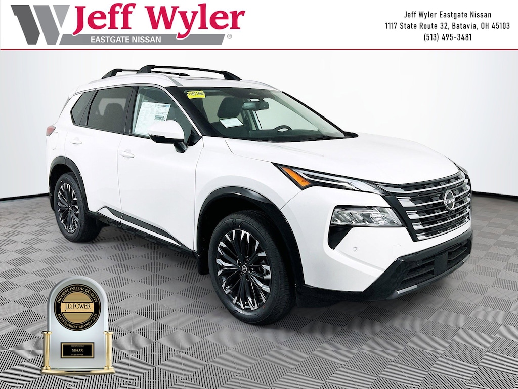 Priced below KBB Fair Purchase Price! Everest White Pearl Tricoat 2026 Nissan Rogue Platinum 1.5L DOHC AWD CVT with Xtronic 28/35 City/Highway MPG Jeff Wyler Eastgate Auto Mall is proud to offer this good-looking 2026 Nissan Rogue Platinum in Everest White Pearl Tricoat. Well equipped with: Platinum Premium Package (Head-Up Display, Heated Rear Seats, Motion-Activated Power Liftgate, and Tri-Zone Automatic Temperature Control), 10 Speakers, 4-Wheel Disc Brakes, ABS brakes, Air Conditioning, Alloy wheels, AM/FM radio: SiriusXM w/360L, Auto High-beam Headlights, Auto-dimming Rear-View mirror, Automatic temperature control, Black Splash Guards (set of 4), Bose Premium Audio System, Brake assist, Bumpers: body-color, Chrome Rear Bumper Protector, Delay-off headlights, Driver door bin, Driver vanity mirror, Dual front impact airbags, Dual front side impact airbags, Electronic Stability Control, Emergency communication system: NissanConnect Services, First Aid Kit, Floor Mats with 2-Piece Cargo Area Protector, Four wheel independent suspension, Front anti-roll bar, Front Bucket Seats, Front Center Armrest, Front dual zone A/C, Front reading lights, Fully automatic headlights, Garage door transmitter: myQ Connected Garage, Heads-Up Display, Heated door mirrors, Heated Front Bucket Seats, Heated front seats, Heated steering wheel, Illuminated entry, Knee airbag, Low tire pressure warning, Memory seat, Navigation system: Google Maps, Occupant sensing airbag, Outside temperature display, Overhead airbag, Overhead console, Panic alarm, Passenger door bin, Passenger vanity mirror, Power door mirrors, Power driver seat, Power Liftgate, Power moonroof, Power passenger seat, Power steering, Power windows, Premium Paint, Quilted Semi-Aniline Leather-Appointed Seat Trim, Radio data system, Radio: AM/FM NissanConnect with Navigation, Rear anti-roll bar, Rear reading lights, Rear seat center armrest, Rear side impact airbag, Rear window defroster, Rear window wiper, Remote keyless entry, Roof Rail Cross Bars, Security system, Speed control, Speed-sensing steering, Speed-Sensitive Wipers, Split folding rear seat, Spoiler, Steering wheel mounted audio controls, Tachometer, Telescoping steering wheel, Tilt steering wheel, Traction control, Trip computer, Turn signal indicator mirrors, Variably intermittent wipers, Wheels: 19" Unique Dark Painted Aluminum Alloy, and Wireless Apple CarPlay/Wireless Android Auto. 28/35 City/Highway MPG Price includes: $3500 - Nissan Customer Cash. Exp. 02/02/2026