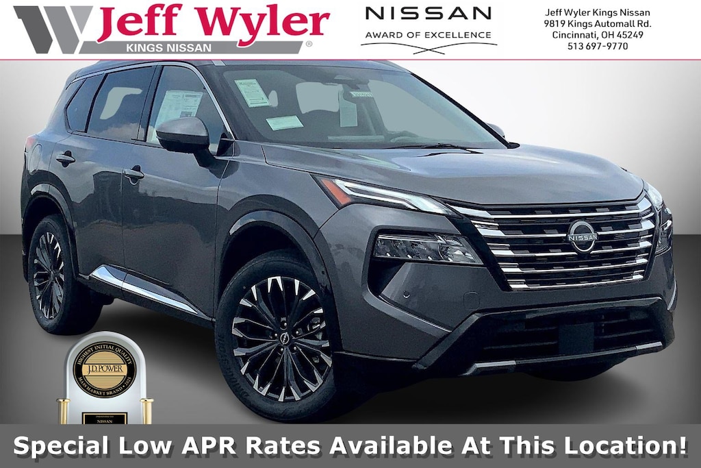 $5,875 off MSRP! Jeff Wyler Kings Nissan is excited to offer this great 2026 Nissan Rogue Platinum in Gun Metallic. Well equipped with: Platinum Premium Package (Head-Up Display, Heated Rear Seats, Motion-Activated Power Liftgate, and Tri-Zone Automatic Temperature Control), AWD, 10 Speakers, 4-Wheel Disc Brakes, ABS brakes, Air Conditioning, Alloy wheels, AM/FM radio: SiriusXM w/360L, Auto High-beam Headlights, Auto-dimming Rear-View mirror, Automatic temperature control, Black Splash Guards (set of 4), Bose Premium Audio System, Brake assist, Bumpers: body-color, Chrome Rear Bumper Protector, Delay-off headlights, Driver door bin, Driver vanity mirror, Dual front impact airbags, Dual front side impact airbags, Electronic Stability Control, Emergency communication system: NissanConnect Services, First Aid Kit, Floor Mats with 2-Piece Cargo Area Protector, Four wheel independent suspension, Front anti-roll bar, Front Bucket Seats, Front Center Armrest, Front dual zone A/C, Front reading lights, Fully automatic headlights, Garage door transmitter: myQ Connected Garage, Heads-Up Display, Heated door mirrors, Heated Front Bucket Seats, Heated front seats, Heated steering wheel, Illuminated entry, Knee airbag, Low tire pressure warning, Memory seat, Navigation system: Google Maps, Occupant sensing airbag, Outside temperature display, Overhead airbag, Overhead console, Panic alarm, Passenger door bin, Passenger vanity mirror, Power door mirrors, Power driver seat, Power Liftgate, Power moonroof, Power passenger seat, Power steering, Power windows, Quilted Semi-Aniline Leather-Appointed Seat Trim, Radio data system, Radio: AM/FM NissanConnect with Navigation, Rear anti-roll bar, Rear reading lights, Rear seat center armrest, Rear side impact airbag, Rear window defroster, Rear window wiper, Remote keyless entry, Roof Rail Cross Bars, Security system, Speed control, Speed-sensing steering, Speed-Sensitive Wipers, Split folding rear seat, Spoiler, Steering wheel mounted audio controls, Tachometer, Telescoping steering wheel, Tilt steering wheel, Traction control, Trip computer, Turn signal indicator mirrors, Variably intermittent wipers, Wheels: 19" Unique Dark Painted Aluminum Alloy, and Wireless Apple CarPlay/Wireless Android Auto. 28/35 City/Highway MPGWyler Family First Package Includes: NanoCure Appearance Protection: Exterior & Interior Chemical Sealant Applied to Protect Against Environmental Hazards (7 Year Warranty Coverage). Pulse- Rear end Collision Avoidance System Theft Deterrent Strategy gives you 5 Years of Coverage against vehicle Theft, Offering up to a $5,000 benefit. Used vehicles 10 years of age or newer with less than 100,000 miles are eligible for the Wyler Assurance Program, but eligible vehicles must pass our reconditioning process and multi-point inspection. Provided the vehicle passes inspection, vehicles will be eligible for the 6 month/6,000 mile limited warranty. The 6 month/6,000 mile limited warranty is NOT available on AS-IS vehicles, wholesale vehicles, lease buyback/pass-thru vehicles or un-inspected vehicles. Note that this program can also apply to vehicles where the remaining factory coverage is less than 6 months or 6,000 miles. Please check the Federal Trade Commission (FTC) Buyers guide on the vehicle for full details as to whether or not warranty coverage may apply. Contact Dealer for additional details. The Wyler Assurance 6 month/6,000 Mile limited warranty ends 6 months from the date of the Retail Purchase Agreement (BUYERS ORDER) or when the vehicle's odometer registers 6,000 additional miles to the mileage listed on the BUYERS ORDER, whichever comes first. Your Deductible - The warranty holder on your contract pays the first $100 of each covered repair. Price includes: $2500 - Nissan Customer Cash. Exp. 01/05/2026 $500 - Nissan MY26 Rogue and Murano Customer Cash. Exp. 01/05/2026