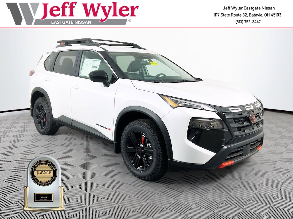 Priced below KBB Fair Purchase Price! Everest White Pearl Tricoat 2026 Nissan Rogue Rock Creek 1.5L DOHC AWD CVT with Xtronic 27/32 City/Highway MPG Jeff Wyler Eastgate Auto Mall is delighted to offer this wonderful 2026 Nissan Rogue Rock Creek in Everest White Pearl Tricoat. Well equipped with: 4-Wheel Disc Brakes, 6 Speakers, ABS brakes, Air Conditioning, Alloy wheels, AM/FM radio: Sirius, Apple CarPlay/Android Auto, Auto High-beam Headlights, Automatic temperature control, Black Splash Guards (Set of 4) (B92), Brake assist, Delay-off headlights, Driver door bin, Driver vanity mirror, Dual front impact airbags, Dual front side impact airbags, Electronic Stability Control, Emergency communication system: NissanConnect Services, Four wheel independent suspension, Front anti-roll bar, Front Bucket Seats, Front Center Armrest, Front dual zone A/C, Front reading lights, Fully automatic headlights, Heated door mirrors, Heated Front Bucket Seats, Heated front seats, Illuminated entry, Knee airbag, Leatherette & Ballistic Nylon Seating, Low tire pressure warning, Occupant sensing airbag, Outside temperature display, Overhead airbag, Overhead console, Panic alarm, Passenger door bin, Passenger vanity mirror, Power door mirrors, Power driver seat, Power Liftgate, Power steering, Power windows, Premium Paint, Radio data system, Radio: AM/FM NissanConnect, Rear anti-roll bar, Rear seat center armrest, Rear side impact airbag, Rear window defroster, Rear window wiper, Remote keyless entry, Roof rack, Speed control, Speed-sensing steering, Speed-Sensitive Wipers, Split folding rear seat, Spoiler, Steering wheel mounted audio controls, Tachometer, Telescoping steering wheel, Tilt steering wheel, Traction control, Trip computer, Variably intermittent wipers, and Wheels: 17" Dark Painted Alloy. 27/32 City/Highway MPG Price includes: $2500 - Nissan Customer Cash. Exp. 01/05/2026