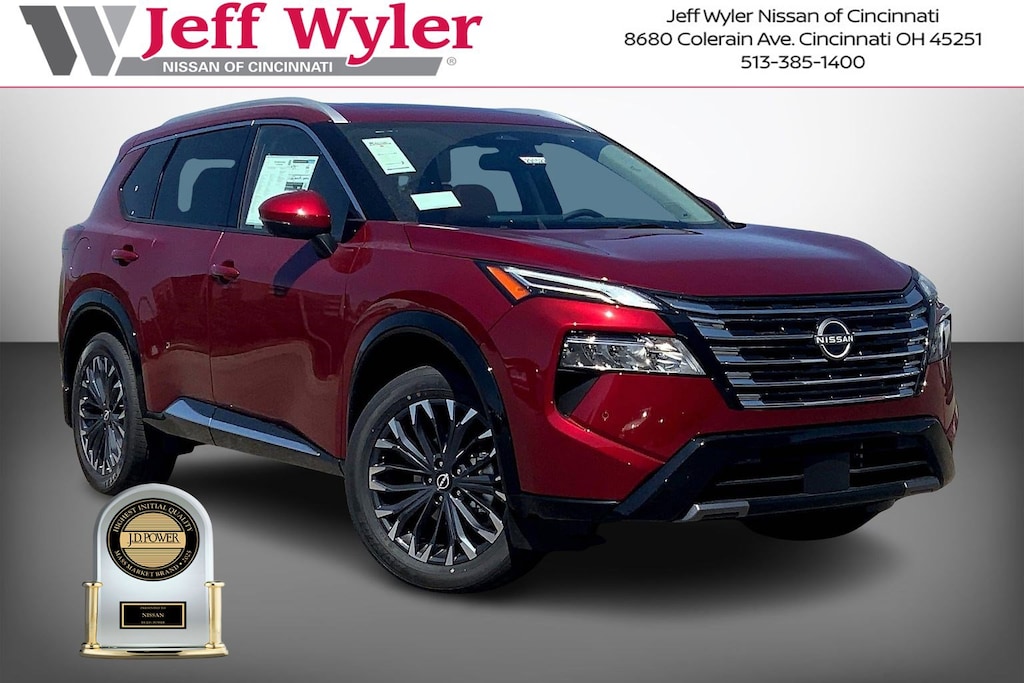 Scarlet Ember Tintcoat 2026 Nissan Rogue Platinum AWD CVT with Xtronic Jeff Wyler Nissan of Cincinnati is excited to offer this fantastic 2026 Nissan Rogue Platinum in Scarlet Ember Tintcoat. Well equipped with: Platinum Premium Package (Head-Up Display, Heated Rear Seats, Motion-Activated Power Liftgate, and Tri-Zone Automatic Temperature Control), AWD, 10 Speakers, 4-Wheel Disc Brakes, ABS brakes, Air Conditioning, Alloy wheels, AM/FM radio: SiriusXM w/360L, Auto High-beam Headlights, Auto-dimming Rear-View mirror, Automatic temperature control, Black Splash Guards (set of 4), Bose Premium Audio System, Brake assist, Bumpers: body-color, Chrome Rear Bumper Protector, Delay-off headlights, Driver door bin, Driver vanity mirror, Dual front impact airbags, Dual front side impact airbags, Electronic Stability Control, Emergency communication system: NissanConnect Services, First Aid Kit, Floor Mats with 2-Piece Cargo Area Protector, Four wheel independent suspension, Front anti-roll bar, Front Bucket Seats, Front Center Armrest, Front dual zone A/C, Front reading lights, Fully automatic headlights, Garage door transmitter: myQ Connected Garage, Heads-Up Display, Heated door mirrors, Heated Front Bucket Seats, Heated front seats, Heated steering wheel, Illuminated entry, Illuminated Kick Plates, Knee airbag, Low tire pressure warning, Memory seat, Navigation system: Google Maps, Occupant sensing airbag, Outside temperature display, Overhead airbag, Overhead console, Panic alarm, Passenger door bin, Passenger vanity mirror, Power door mirrors, Power driver seat, Power Liftgate, Power moonroof, Power passenger seat, Power steering, Power windows, Premium Paint, Quilted Semi-Aniline Leather-Appointed Seat Trim, Radio data system, Radio: AM/FM NissanConnect with Navigation, Rear anti-roll bar, Rear reading lights, Rear seat center armrest, Rear side impact airbag, Rear window defroster, Rear window wiper, Remote keyless entry, Retractable Cargo Cover, Security system, Speed control, Speed-sensing steering, Speed-Sensitive Wipers, Split folding rear seat, Spoiler, Steering wheel mounted audio controls, Tachometer, Telescoping steering wheel, Tilt steering wheel, Traction control, Trip computer, Turn signal indicator mirrors, Variably intermittent wipers, Wheels: 19" Unique Dark Painted Aluminum Alloy, and Wireless Apple CarPlay/Wireless Android Auto. 1.5L DOHC AWD.Recent Arrival! 28/35 City/Highway MPGWyler Family First Package Includes: NanoCure Appearance Protection: Exterior & Interior Chemical Sealant Applied to Protect Against Environmental Hazards (7 Year Warranty Coverage). Pulse- Rear end Collision Avoidance System Theft Deterrent Strategy gives you 5 Years of Coverage against vehicle Theft, Offering up to a $5,000 benefit. Price includes: $3500 - Nissan Customer Cash. Exp. 02/02/2026