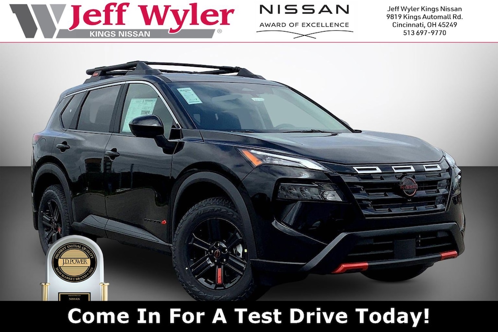 $5,311 off MSRP! Jeff Wyler Kings Nissan is pleased to offer this good-looking 2026 Nissan Rogue Rock Creek in Super Black. Well equipped with: AWD, 4-Wheel Disc Brakes, 6 Speakers, ABS brakes, Air Conditioning, Alloy wheels, AM/FM radio, Apple CarPlay/Android Auto, Auto High-beam Headlights, Automatic temperature control, Black Splash Guards (set of 4), Brake assist, Delay-off headlights, Driver door bin, Driver vanity mirror, Dual front impact airbags, Dual front side impact airbags, Electronic Stability Control, Emergency communication system: NissanConnect Services, Four wheel independent suspension, Front anti-roll bar, Front Bucket Seats, Front Center Armrest, Front dual zone A/C, Front reading lights, Fully automatic headlights, Heated door mirrors, Heated Front Bucket Seats, Heated front seats, Illuminated entry, Knee airbag, Leatherette and Ballistic Nylon Seating, Low tire pressure warning, Occupant sensing airbag, Outside temperature display, Overhead airbag, Overhead console, Panic alarm, Passenger door bin, Passenger vanity mirror, Power door mirrors, Power driver seat, Power Liftgate, Power steering, Power windows, Radio data system, Radio: AM/FM NissanConnect, Rear anti-roll bar, Rear Parking Sensors, Rear seat center armrest, Rear side impact airbag, Rear window defroster, Rear window wiper, Remote keyless entry, Roof rack, Speed control, Speed-sensing steering, Speed-Sensitive Wipers, Split folding rear seat, Spoiler, Steering wheel mounted audio controls, Tachometer, Telescoping steering wheel, Tilt steering wheel, Traction control, Trip computer, Variably intermittent wipers, and Wheels: 17" Dark Painted Alloy. 27/32 City/Highway MPGWyler Family First Package Includes: NanoCure Appearance Protection: Exterior & Interior Chemical Sealant Applied to Protect Against Environmental Hazards (7 Year Warranty Coverage). Pulse- Rear end Collision Avoidance System Theft Deterrent Strategy gives you 5 Years of Coverage against vehicle Theft, Offering up to a $5,000 benefit. Used vehicles 10 years of age or newer with less than 100,000 miles are eligible for the Wyler Assurance Program, but eligible vehicles must pass our reconditioning process and multi-point inspection. Provided the vehicle passes inspection, vehicles will be eligible for the 6 month/6,000 mile limited warranty. The 6 month/6,000 mile limited warranty is NOT available on AS-IS vehicles, wholesale vehicles, lease buyback/pass-thru vehicles or un-inspected vehicles. Note that this program can also apply to vehicles where the remaining factory coverage is less than 6 months or 6,000 miles. Please check the Federal Trade Commission (FTC) Buyers guide on the vehicle for full details as to whether or not warranty coverage may apply. Contact Dealer for additional details. The Wyler Assurance 6 month/6,000 Mile limited warranty ends 6 months from the date of the Retail Purchase Agreement (BUYERS ORDER) or when the vehicle's odometer registers 6,000 additional miles to the mileage listed on the BUYERS ORDER, whichever comes first. Your Deductible - The warranty holder on your contract pays the first $100 of each covered repair. Price includes: $3500 - Nissan Customer Cash. Exp. 05/04/2026