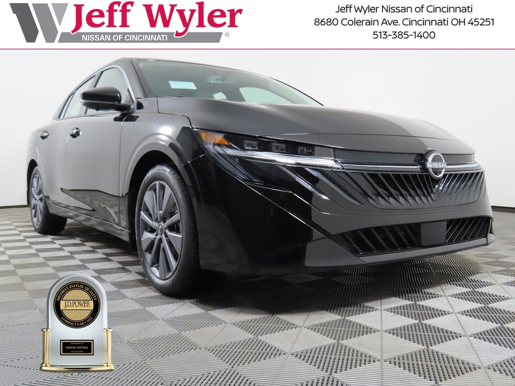 $2,080 off MSRP! Super Black 2026 Nissan Sentra SL FWD CVT with Xtronic Jeff Wyler Nissan of Cincinnati is excited to offer this outstanding-looking 2026 Nissan Sentra SL in Super Black. Well equipped with: Floor Mat Package, CVT with Xtronic, Quilted Gray Artificial Leather, 17" Machined Alloy Wheels, 4-Wheel Disc Brakes, 8 Speakers, ABS brakes, Air Conditioning, Alloy wheels, AM/FM radio: Sirius, Auto High-beam Headlights, Auto-dimming Rear-View mirror, Automatic temperature control, Body Colored Splash Guards (4-Piece), Brake assist, Bumpers: body-color, Delay-off headlights, Driver door bin, Driver vanity mirror, Dual front impact airbags, Dual front side impact airbags, Electronic Stability Control, Emergency communication system: NissanConnect(R) Services powered by SiriusXM(R), Four wheel independent suspension, Front anti-roll bar, Front Bucket Seats, Front Center Armrest, Front dual zone A/C, Front reading lights, Fully automatic headlights, Garage door transmitter, Heated door mirrors, Heated Front Bucket Seats, Heated front seats, Heated steering wheel, Illuminated entry, Illuminated Kick Plates, Illuminated Trunk Scuff Plate, Knee airbag, Leather steering wheel, Low tire pressure warning, Occupant sensing airbag, Outside temperature display, Overhead airbag, Overhead console, Panic alarm, Passenger door bin, Passenger vanity mirror, Power door mirrors, Power driver seat, Power moonroof, Power steering, Power windows, Quilted TailorFit Synthetic Leather Seat Trim, Radio data system, Radio: AM/FM with RDS/MP3, Rear anti-roll bar, Rear seat center armrest, Rear side impact airbag, Rear window defroster, Remote keyless entry, Security system, Speed control, Speed-sensing steering, Split folding rear seat, Steering wheel mounted audio controls, Tachometer, Telescoping steering wheel, Tilt steering wheel, Traction control, Trip computer, Turn signal indicator mirrors, Variably intermittent wipers, and Wireless Apple CarPlay/Wireless Android Auto. 2.0L I4 DOHC CVT with Xtronic, Quilted Gray Artificial Leather.30/38 City/Highway MPGWyler Family First Package Includes: NanoCure Appearance Protection: Exterior & Interior Chemical Sealant Applied to Protect Against Environmental Hazards (7 Year Warranty Coverage). Pulse- Rear end Collision Avoidance System Theft Deterrent Strategy gives you 5 Years of Coverage against vehicle Theft, Offering up to a $5,000 benefit. Price includes: $500 - Nissan MY26 Sentra Customer Cash (All Markets) - February. Exp. 03/02/2026