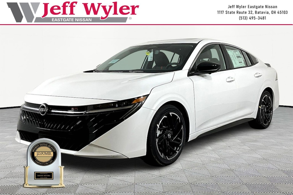 Aspen White Tricoat 2026 Nissan Sentra SR 2.0L I4 DOHC FWD CVT with Xtronic 30/38 City/Highway MPG Jeff Wyler Eastgate Auto Mall is proud to offer this superb-looking 2026 Nissan Sentra SR in Aspen White Tricoat. Well equipped with: Floor Mat Package, SR All Weather Package (Dual Zone Auto Climate Control, Heated Front Seats, and Heated Steering Wheel), SR Moonroof Package (Power Tilt Sliding Sunroof with Manual Sunshade), SR Premium Package (6-Way Power Driver's Seat, Auto-Dimming Rear-View Mirror, Bose Premium Audio System, Digital Around View Monitor, Moving Object Detection (MOD), Pro Pilot Assist, Rear Automatic Emergency Braking, Rear Parking Sensor Aid, Sport Leatherette Seat Trim, and Visor DR/AS w/LED Light), 18" Machined Alloy Wheels, 4-Wheel Disc Brakes, 6 Speakers, ABS brakes, Air Conditioning, Alloy wheels, AM/FM radio: Sirius, Auto High-beam Headlights, Automatic temperature control, Brake assist, Bumpers: body-color, Delay-off headlights, Driver door bin, Driver vanity mirror, Dual front impact airbags, Dual front side impact airbags, Electronic Stability Control, Emergency communication system: NissanConnect Services, Four wheel independent suspension, Front anti-roll bar, Front Bucket Seats, Front Center Armrest, Front reading lights, Fully automatic headlights, Garage door transmitter, Heated door mirrors, Illuminated entry, Illuminated Kick Plates, Knee airbag, Leather steering wheel, Low tire pressure warning, Nissan USB Charging Cable Set, Occupant sensing airbag, Outside temperature display, Overhead airbag, Overhead console, Panic alarm, Passenger door bin, Passenger vanity mirror, Power door mirrors, Power steering, Power windows, Premium Paint, Radio data system, Radio: AM/FM with RDS/MP3, Rear anti-roll bar, Rear seat center armrest, Rear side impact airbag, Rear window defroster, Remote keyless entry, Security system, Speed control, Speed-sensing steering, Split folding rear seat, Spoiler, Sport Cloth Seat Trim, Steering wheel mounted audio controls, Tachometer, Telescoping steering wheel, Tilt steering wheel, Traction control, Trip computer, Turn signal indicator mirrors, Variably intermittent wipers, and Wireless Apple CarPlay/Wireless Android Auto. 30/38 City/Highway MPG Price includes: $500 - Nissan Customer Cash. Exp. 05/04/2026