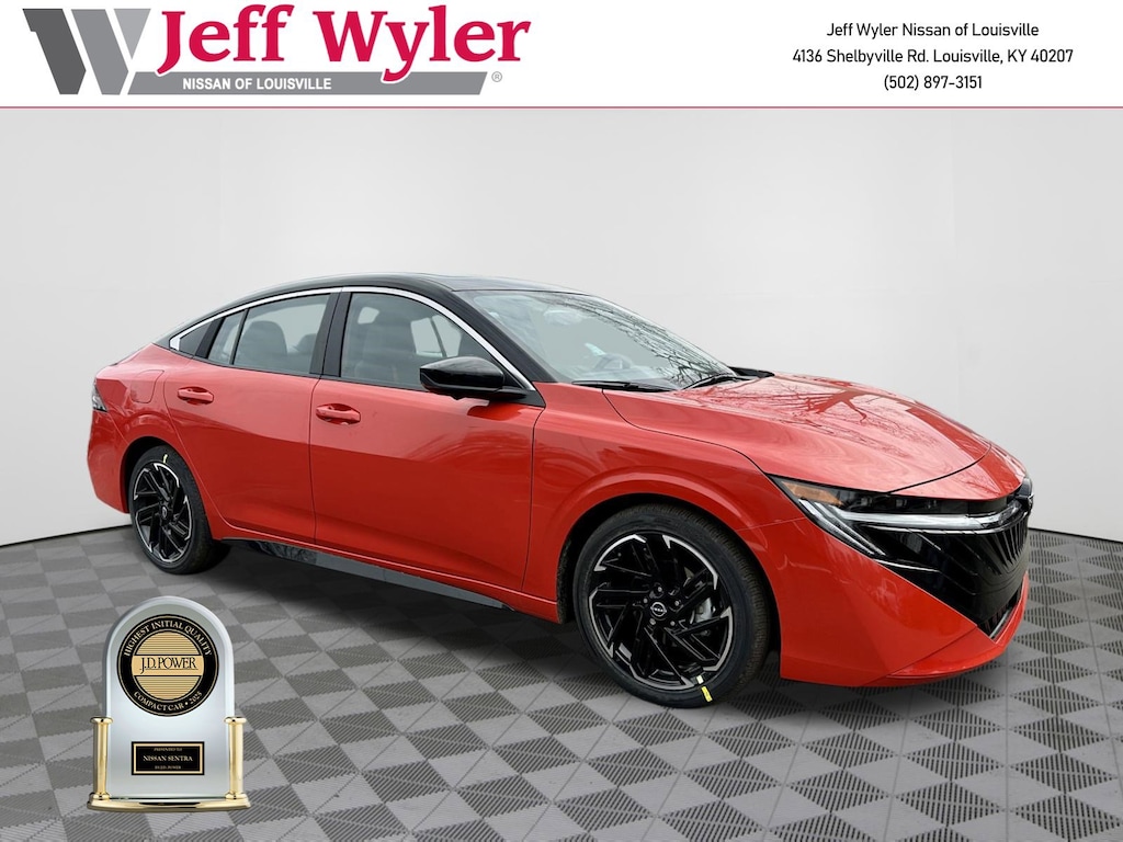 Jeff Wyler Nissan of Louisville is pleased to offer this wonderful-looking 2026 Nissan Sentra SR in Energetic Ember/Super Blk. Well equipped with: Floor Mat Package, SR All Weather Package (Dual Zone Auto Climate Control, Heated Front Seats, and Heated Steering Wheel), SR Moonroof Package (Power Tilt Sliding Sunroof with Manual Sunshade), SR Premium Package (6-Way Power Driver's Seat, Auto-Dimming Rear-View Mirror, Bose Premium Audio System, Digital Around View Monitor, Moving Object Detection (MOD), Pro Pilot Assist, Rear Automatic Emergency Braking, Rear Parking Sensor Aid, Sport Leatherette Seat Trim, and Visor DR/AS w/LED Light), CVT with Xtronic, Sport Cloth, 18" Black Alloy Wheels, 18" Machined Alloy Wheels, 2-Tone Premium Paint, 4-Wheel Disc Brakes, 6 Speakers, ABS brakes, Air Conditioning, Alloy wheels, AM/FM radio: Sirius, Auto High-beam Headlights, Automatic temperature control, Brake assist, Bumpers: body-color, Delay-off headlights, Driver door bin, Driver vanity mirror, Dual front impact airbags, Dual front side impact airbags, Electronic Stability Control, Emergency communication system: NissanConnect Services, Four wheel independent suspension, Front anti-roll bar, Front Bucket Seats, Front Center Armrest, Front reading lights, Fully automatic headlights, Garage door transmitter, Heated door mirrors, Illuminated entry, Illuminated Kick Plates, Illuminated Trunk Scuff Plate, Interior Accent Lighting, Knee airbag, Leather steering wheel, Low tire pressure warning, Occupant sensing airbag, Outside temperature display, Overhead airbag, Overhead console, Panic alarm, Passenger door bin, Passenger vanity mirror, Power door mirrors, Power steering, Power windows, Radio data system, Radio: AM/FM with RDS/MP3, Rear anti-roll bar, Rear seat center armrest, Rear side impact airbag, Rear window defroster, Remote keyless entry, Security system, Speed control, Speed-sensing steering, Split folding rear seat, Spoiler, Sport Cloth Seat Trim, Steering wheel mounted audio controls, Tachometer, Telescoping steering wheel, Tilt steering wheel, Traction control, Trip computer, Turn signal indicator mirrors, Variably intermittent wipers, and Wireless Apple CarPlay/Wireless Android Auto.2026 Nissan Sentra SR Energetic Ember/Super Blk Wyler Family First Package Includes: NanoCure Appearance Protection: Exterior & Interior Chemical Sealant Applied to Protect Against Environmental Hazards (7 Year Warranty Coverage). Pulse- Rear end Collision Avoidance System Theft Deterrent Strategy gives you 5 Years of Coverage against vehicle Theft, Offering up to a $5,000 benefit. CVT with Xtronic, Sport Cloth. Customer's May Not Qualify for All Rebates. Prices Do Not Include Tax, License. $500 - Nissan Customer Cash. Exp. 05/04/2026