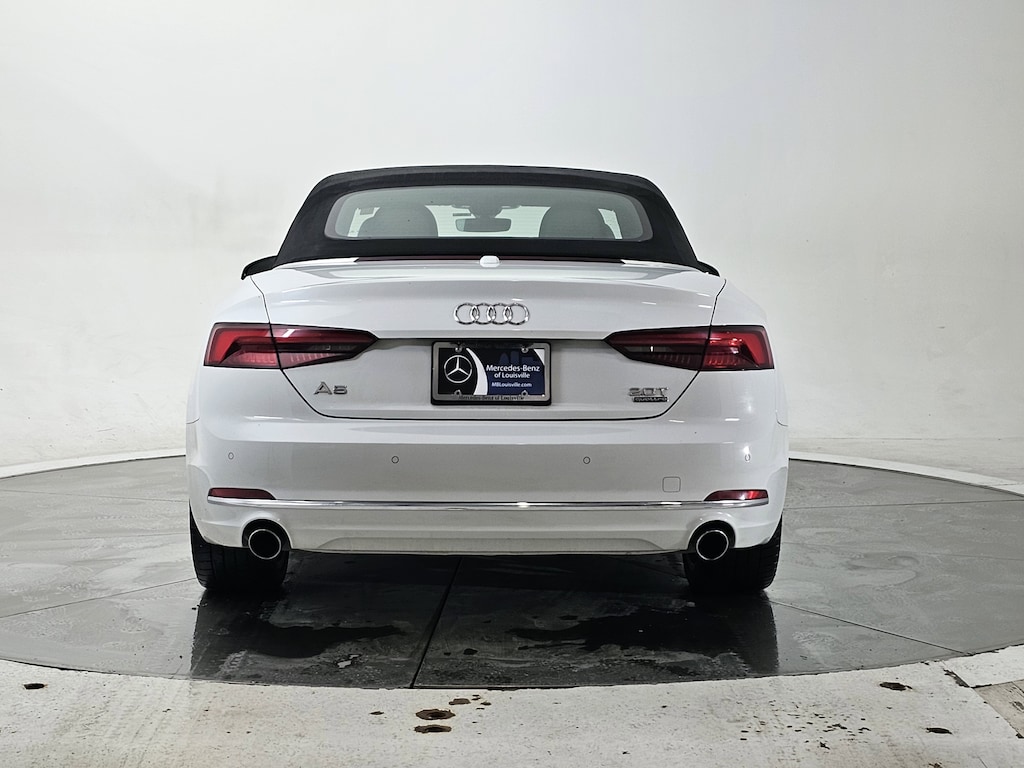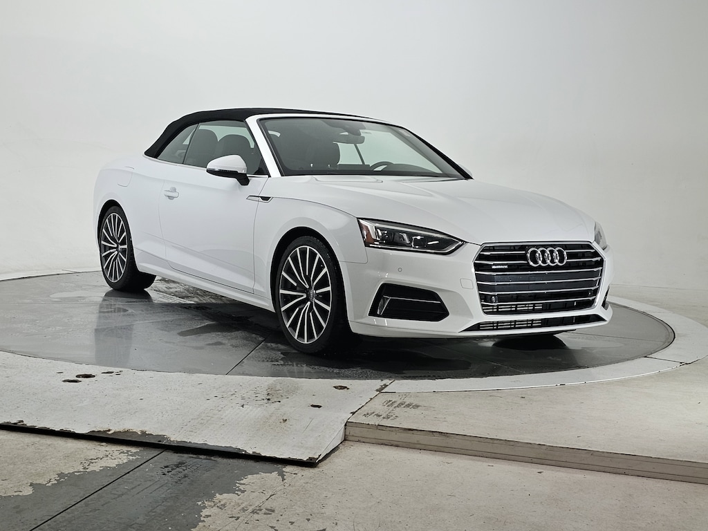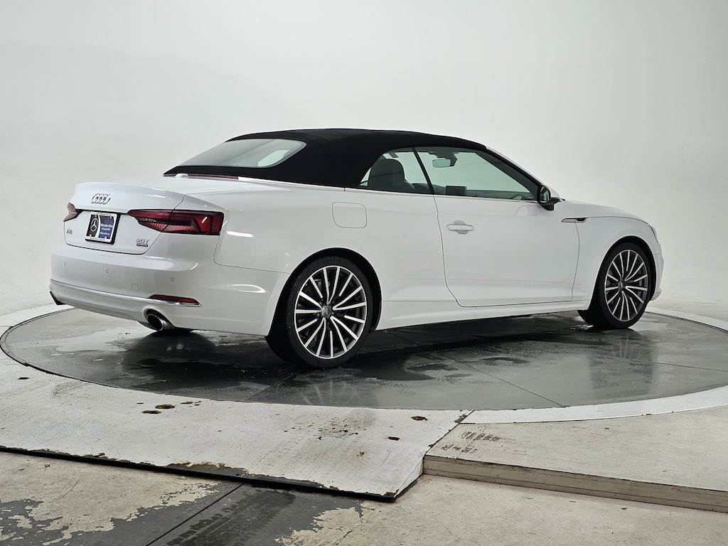 White 2018 Audi A5 2.0T Premium Plus quattro quattro 7-Speed Automatic S tronic 2.0L 4-Cylinder TFSI quattro, Black Leather, 12.3" LCD Display Audi Virtual Cockpit, 19" Design line Wheel Package, Audi MMI Navigation Plus w/MMI Touch, Audi Side Assist, Convenience Package, Front Sport Seats, Full LED Headlights, Heated 3-Spoke Steering Wheel w/Shift Paddles, Heated Auto-Dimming Power Ext Mirrors w/Memory, Heated Front Seats, Luxury Package, Navigation Package, Neck-Level Heating System, Parking System Plus (Front/Rear Acoustic Sensors), Premium Plus, Rear Audi Pre Sense, Split-Folding Rear Seats, Sport Suspension, Wheels: 19" x 8.5" Multi-Spoke Design Bi-Color.