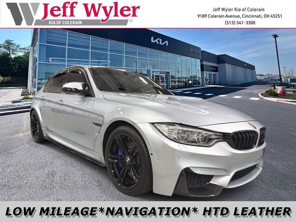 Jeff Wyler Kia of Colerain is very proud to offer this fantastic 2015 BMW M3 in Silverstone Metallic. 4-Wheel Disc Brakes, 9 Speakers, ABS brakes, Active Blind Spot Detection, Active Driving Assistant, Adaptive Full LED Lights, Adaptive M Suspension, Air Conditioning, Alloy wheels, AM/FM radio, Auto-dimming door mirrors, Auto-dimming Rear-View mirror, Automatic High Beams, Automatic temperature control, Black Chrome Highlight Trim Finishers, Brake assist, Bumpers: body-color, CD player, Cloth/Leather Upholstery, Comfort Access Keyless Entry, Delay-off headlights, Driver door bin, Driver vanity mirror, Dual front impact airbags, Dual front side impact airbags, DVD-Audio, Electronic Stability Control, Emergency communication system: BMW Assist eCall, Enhanced USB & Bluetooth w/Smartphone Integration, Four wheel independent suspension, Front anti-roll bar, Front Bucket Seats, Front Center Armrest, Front dual zone A/C, Front reading lights, Fully automatic headlights, Garage door transmitter, harman/kardon Surround Sound System, Head-Up Display, Heated door mirrors, Heated front seats, Heated Front Sport Seats, Heated Rear Seats, Heated Steering Wheel, High intensity discharge headlights: Bi-xenon, Illuminated entry, Knee airbag, Leather Shift Knob, Leather steering wheel, Low tire pressure warning, Manual Rear Side Window Shades, Memory seat, Moonroof, Navigation System, Occupant sensing airbag, Outside temperature display, Overhead airbag, Panic alarm, Park Distance Control, Parking Assistant, Passenger door bin, Passenger vanity mirror, Power door mirrors, Power driver seat, Power passenger seat, Power Rear Sunshade, Power steering, Power windows, Radio data system, Radio: AM/FM Audio System, Rain sensing wipers, Rear air conditioning, Rear anti-roll bar, Rear reading lights, Rear seat center armrest, Rear window defroster, Rear-View Camera, Remote keyless entry, Retractable Headlight Washers, Satellite Radio w/1 Year Subscription, Security system, Side & Top View Cameras, Speed control, Speed Limit Info, Speed-sensing steering, Speed-Sensitive Wipers, Split folding rear seat, Spoiler, Sport steering wheel, Steering wheel mounted audio controls, Tachometer, Telescoping steering wheel, Tilt steering wheel, Traction control, Trip computer, Turn signal indicator mirrors, Variably intermittent wipers, Wheels: 18" x 9" Front & 18" x 10" Rear, and Wheels: 19" x 9" Fr/19" x 10" Rr Black Light-Alloy Our PRE-OWNED vehicles are put through a rigorous 167- POINT QUALITY ASSURANCE INSPECTION along with an average amount of over $1,400.00 SPENT to recondition each vehicle so we can be sure to deliver you the highest quality vehicle like you deserve! ***ONLINE PRICE DOES NOT INCLUDE WYLER FAMILY FIRST PACKAGE***