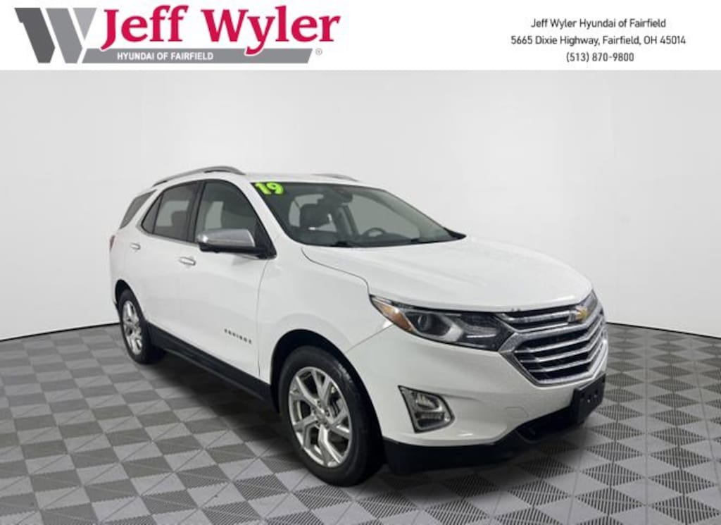 CARFAX One-Owner. Clean CARFAX. Jeff Wyler Hyundai of Fairfield is proud to offer this great 2019 Chevrolet Equinox Premier in Summit White. Well equipped with: Confidence & Convenience II Package, Driver Confidence II Package (Adaptive Cruise Control - Camera, Following Distance Indicator, Forward Collision Alert, Front Pedestrian Braking, HD Surround Vision, IntelliBeam Auto High Beam Headlamp Control, Lane Keep Assist w/Lane Departure Warning, Low Speed Forward Automatic Braking, and Safety Alert Seat), Driver Convenience II Package (8-Way Power Front Passenger Seat Adjuster, Heated Rear Seats, Heated Steering Wheel, Ventilated Driver Seat, and Ventilated Front Passenger Seat), Interior Protection Package (LPO) (All-Weather Floor Mats and Cargo Mat), Preferred Equipment Group 1LZ, Android Auto, Apple CarPlay, CALL NOW FOR YOUR VIP APPOINTMENT 513-870-9800, FULLY SERVICED w/RECORDS, GUARANTEED FINANCING!! NO MATTER YOUR SITUATION WE CAN GET AN APPROVAL!!, THE #1 Volume dealer in the region! Come see why for yourself Today!!, WE PAY MORE FOR YOUR TRADE!!, 18" Aluminum Wheels, 2 Rear USB Charging-Only Ports, 2 USB Data Ports, 2 USB Data Ports w/SD Card Reader, 2-Way Power Driver Lumbar Control Seat Adjuster, 3.50 Final Drive Axle Ratio, 4-Wheel Disc Brakes, 6 Speaker Audio System Feature, 6 Speakers, 8-Way Power Driver Seat Adjuster, ABS brakes, Air Conditioning, Alloy wheels, AM/FM radio: SiriusXM, Apple CarPlay/Android Auto, Auto-dimming door mirrors, Auto-dimming Rear-View mirror, Automatic temperature control, Bluetooth® For Phone, Brake assist, Bumpers: body-color, Compass, Delay-off headlights, Driver door bin, Driver vanity mirror, Dual front impact airbags, Dual front side impact airbags, Electronic Stability Control, Emergency communication system: OnStar and Chevrolet connected services capable, Four wheel independent suspension, Front anti-roll bar, Front Bucket Seats, Front Center Armrest, Front dual zone A/C, Front fog lights, Front Passenger 4-Way Manual Seat Adjuster, Front reading lights, Fully automatic headlights, Garage door transmitter, Heated door mirrors, Heated Driver & Front Passenger Seats, Heated front seats, Illuminated entry, Leather Shift Knob, Low tire pressure warning, Memory seat, Occupant sensing airbag, Outside temperature display, Overhead airbag, Overhead console, Panic alarm, Passenger door bin, Passenger vanity mirror, Perforated Leather-Appointed Seat Trim, Power door mirrors, Power driver seat, Power Liftgate, Power steering, Power windows, Premium audio system: Chevrolet MyLink, Radio data system, Radio: Chevrolet Infotainment 3 Plus System, Rear anti-roll bar, Rear reading lights, Rear seat center armrest, Rear window defroster, Rear window wiper, Remote keyless entry, Roof rack: rails only, Security system, SiriusXM Radio, Speed control, Speed-sensing steering, Split folding rear seat, Spoiler, Steering wheel mounted audio controls, Tachometer, Telescoping steering wheel, Tilt steering wheel, Traction control, Trip computer, Turn signal indicator mirrors, and Variably intermittent wipers. TO CHECK ON THE AVAILABILITY OF THIS VEHICLE REACH OUT TO ONE OF OUR TEAM MEMBERS!! ALSO SHOP ONLINE AT https://www.jeffwylerhyundaioffairfield.com/ Proudly Serving: Cincinnati, Dayton, Columbus, Louisville, Lexington, Indianapolis, Hamilton, Florence, Alexandria, Beavercreek, Springdale, West Chester, Monroe, Fairfield, Kenwood, Newport and all of greater Cincinnati Ohio, Indiana, and Northern Kentucky.