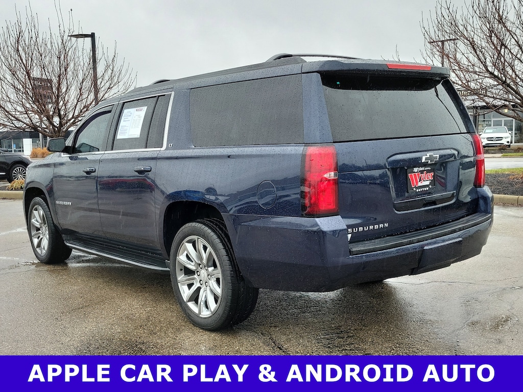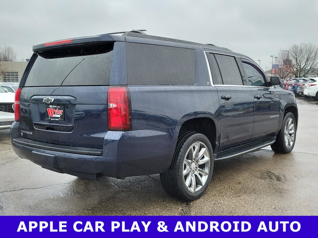 Jeff Wyler Acura of Dayton is pleased to offer this fantastic-looking 2019 Chevrolet Suburban LT in Blue Velvet Metallic. Enhanced Driver Alert Package (Forward Collision Alert, IntelliBeam w/Automatic High Beam On/Off, Lane Keep Assist w/Lane Departure Warning, Low Speed Forward Automatic Braking, and Safety Alert Seat), Luxury Package (2nd Row Pwr Release 60/40 Split Folding Bench Seat, 3rd Row 60/40 Power Fold Split-Bench, Fog Lamps, Front & Rear Park Assist, Hands-Free Power Liftgate, Heated 2nd Row Outboard Seats, Heated Leather Wrapped Steering Wheel, Lane Change Alert w/Side Blind Zone Alert, Memory Settings, Passive Entry System, Power Folding & Adjustable Heated Outside Mirrors, Power Tilt & Telescoping Steering Column, Push Button Keyless Start, and Rear Cross Traffic Alert), Max Trailering Package (2-Speed Active Electronic AutoTrac Transfer Case and Integrated Trailer Brake Controller), Preferred Equipment Group 1LT (12-Volt Auxiliary Power Outlet (5), 1st & 2nd Row Color-Keyed Carpeted Floor Mats, 2nd Row 60/40 Split-Folding Manual Bench, 3rd Row Manual 60/40 Split-Folding Fold Flat Bench, 4-Wheel Antilock Disc Brakes, 6-Way Power Front Passenger Seat Adjuster, Auto-Dimming Inside Rear-View Mirror, Black Assist Steps, Bose Premium Audio System Feature, Color-Keyed Carpeting Floor Covering, Driver Inboard & Front Passenger Airbags, Electronic Cruise Control w/Set & Resume Speed, Extended-Range Remote Keyless Entry, Floor Console w/Storage Area, HD Radio, Leather-Wrapped Steering Wheel, Power Liftgate, Power-Adjustable Accelerator & Brake Pedals, Rear Park Assist w/Audible Warning, Remote Vehicle Start, Roof-Mounted Luggage Rack Side Rails, SiriusXM Radio, and Universal Home Remote), Premium Smooth Ride Suspension Package, Standard Suspension Package, Sun, Entertainment & Destinations Package (3rd Row DVD Screen, AM/FM Stereo w/Navigation, Power Tilt-Sliding Sunroof w/Express-Open/Close, Rear Seat Entertainment System, Single-Slot CD/MP3 Player, and SiriusXM NavTraffic), 18" x 8.5" High-Polished Aluminum Finish Wheels, 3rd row seats: split-bench, 4-Wheel Disc Brakes, 9 Speakers, ABS brakes, Adjustable pedals, Air Conditioning, Alloy wheels, AM/FM radio: SiriusXM, Apple CarPlay/Android Auto, Auto High-beam Headlights, Auto-dimming Rear-View mirror, Automatic temperature control, Brake assist, Bumpers: body-color, CD player, Compass, Delay-off headlights, Driver door bin, Driver vanity mirror, Dual front impact airbags, Dual front side impact airbags, Electronic Stability Control, Emergency communication system: OnStar and Chevrolet connected services capable, Exterior Parking Camera Rear, Front anti-roll bar, Front Bucket Seats, Front Center Armrest, Front dual zone A/C, Front reading lights, Front wheel independent suspension, Fully automatic headlights, Garage door transmitter, Heated door mirrors, Heated Front Reclining Bucket Seats, Heated front seats, Illuminated entry, Leather-Appointed Seat Trim, Low tire pressure warning, Memory seat, Occupant sensing airbag, Outside temperature display, Overhead airbag, Overhead console, Panic alarm, Passenger door bin, Passenger vanity mirror, Pedal memory, Power door mirrors, Power driver seat, Power passenger seat, Power Release 2nd Row Bucket Seats, Power steering, Power windows, Radio: AM/FM Stereo w/Chevrolet Infotainment, Rain sensing wipers, Rear air conditioning, Rear anti-roll bar, Rear reading lights, Rear seat center armrest, Rear window defroster, Rear window wiper, Remote keyless entry, Roof rack: rails only, Security system, Speed control, Speed-sensing steering, Split folding rear seat, Spoiler, Steering wheel mounted audio controls, Tachometer, Telescoping steering wheel, Tilt steering wheel, Traction control, Trip computer, Variably intermittent wipers, Voltmeter, Wheel Locks (Set of 4) (LPO), and Wheels: 22" Premium Painted w/Chrome Inserts Our PRE-OWNED vehicles are put through a rigorous 167- POINT QUALITY ASSURANCE INSPECTION along with an average amoun