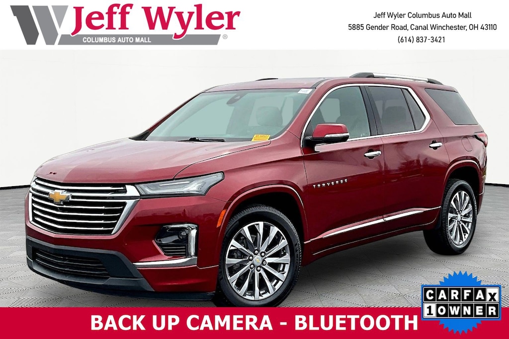 2022 Chevrolet Traverse Cherry Red Tintcoat 3.6L V6 SIDI VVT 9-Speed Automatic Premier AWD AWD. CARFAX One-Owner.Come visit the all new Jeff Wyler Chevrolet of Columbus the official Home of the Fresh Start Program! See how easy it is drive your new vehicle home today.