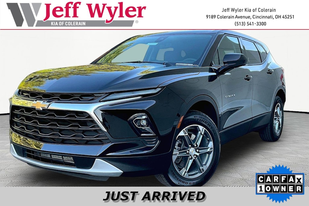 Jeff Wyler Kia of Colerain is honored to offer this stunning-looking 2024 Chevrolet Blazer LT in Black. Floor Liner Package (LPO) (1st & 2nd Row All-Weather Floor Liners (LPO) and Integrated Cargo Liner (LPO)), Preferred Equipment Group 2LT, Trailering Equipment (Hitch Guidance), 170 Amp Alternator, 3.47 Final Drive Axle Ratio, 4-Way Manual Front Passenger Seat Adjuster, 4-Wheel Disc Brakes, 6 Speakers, 6-Speaker Audio System Feature, 8-Way Power Driver Seat Adjuster, ABS brakes, Air Conditioning, Alloy wheels, AM/FM radio: SiriusXM with 360L, Apple CarPlay/Android Auto, Auto High-beam Headlights, Automatic temperature control, Brake assist, Bumpers: body-color, Child-Seat-Sensing Airbag, Compass, Delay-off headlights, Driver door bin, Driver vanity mirror, Dual front impact airbags, Dual front side impact airbags, Electronic Stability Control, Emergency communication system: OnStar and Chevrolet connected services capable, Four wheel independent suspension, Front anti-roll bar, Front Bucket Seats, Front Center Armrest, Front dual zone A/C, Front reading lights, Fully automatic headlights, Heated door mirrors, Heated Driver & Front Passenger Seats, Heated front seats, Illuminated entry, Knee airbag, Leather Shift Knob, Low tire pressure warning, Occupant sensing airbag, Outside temperature display, Overhead airbag, Overhead console, Panic alarm, Passenger door bin, Passenger vanity mirror, Power door mirrors, Power Driver Lumbar Control, Power driver seat, Power steering, Power windows, Premium audio system: Chevrolet Infotainment 3 Plus, Premium Cloth Seat Trim, Radio data system, Radio: Chevrolet Infotainment 3 Plus System, Rear anti-roll bar, Rear reading lights, Rear seat center armrest, Rear window defroster, Rear window wiper, Remote keyless entry, Ride & Handling Suspension, Security system, SiriusXM w/360L, Speed control, Speed-sensing steering, Split folding rear seat, Spoiler, Steering wheel mounted audio controls, Tachometer, Telescoping steering wheel, Tilt steering wheel, Traction control, Trip computer, Variably intermittent wipers, Voltmeter, and Wheels: 18" Grazen Metallic Aluminum Our PRE-OWNED vehicles are put through a rigorous 167- POINT QUALITY ASSURANCE INSPECTION along with an average amount of over $1,400.00 SPENT to recondition each vehicle so we can be sure to deliver you the highest quality vehicle like you deserve! ***ONLINE PRICE DOES NOT INCLUDE WYLER FAMILY FIRST PACKAGE***
