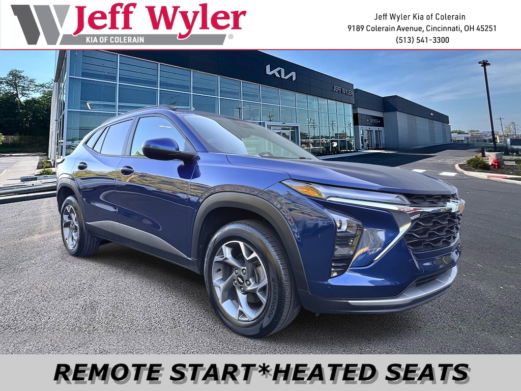 Jeff Wyler Kia of Colerain is pleased to offer this terrific-looking 2024 Chevrolet Trax LT in Blue Glow Metallic. Driver Confidence Package (Adaptive Cruise Control, Lane Change Alert w/Side Blind Zone Alert, and Rear Cross-Traffic Alert), License Plate Front Mounting Package, LT Convenience Package (Heated Driver & Front Passenger Seats, Heated Power-Adjustable Outside Mirrors, Heated Steering Wheel, Keyless Open, and Wrapped Steering Wheel), Preferred Equipment Group 1LT, 2-Way Adjustable Front Head Restraints, 3.50 Final Drive Axle Ratio, 4-Way Manual Front Passenger Seat Adjuster, 4-Wheel Disc Brakes, 6 Speakers, 6-Speaker Audio System Feature, 6-Way Manual Driver Seat Adjuster, ABS brakes, Air Conditioning, Alloy wheels, AM/FM radio: SiriusXM, Auto High-beam Headlights, Automatic temperature control, Brake assist, Bumpers: body-color, Cloth/Evotex Seat Trim, Compass, Delay-off headlights, Driver door bin, Driver vanity mirror, Dual front impact airbags, Dual front side impact airbags, Electronic Stability Control, Emergency communication system: OnStar and Chevrolet connected services capable, Exterior Parking Camera Rear, Front anti-roll bar, Front Bucket Seats, Front Center Armrest, Front reading lights, Front wheel independent suspension, Fully automatic headlights, Illuminated entry, Low tire pressure warning, Occupant sensing airbag, Outside temperature display, Overhead airbag, Overhead console, Panic alarm, Passenger door bin, Passenger vanity mirror, Power door mirrors, Power steering, Power windows, Premium audio system: Chevrolet Infotainment 3, Radio data system, Radio: Audio System w/AM/FM, Rear Park Assist (DISC), Rear window defroster, Rear window wiper, Remote keyless entry, Security system, SiriusXM, Speed control, Split folding rear seat, Spoiler, Steering wheel mounted audio controls, Tachometer, Telescoping steering wheel, Tilt steering wheel, Traction control, Trip computer, Variably intermittent wipers, and Wheels: 17" Gray-Painted Machined Aluminum Our PRE-OWNED vehicles are put through a rigorous 167- POINT QUALITY ASSURANCE INSPECTION along with an average amount of over $1,400.00 SPENT to recondition each vehicle so we can be sure to deliver you the highest quality vehicle like you deserve! ***ONLINE PRICE DOES NOT INCLUDE WYLER FAMILY FIRST PACKAGE***