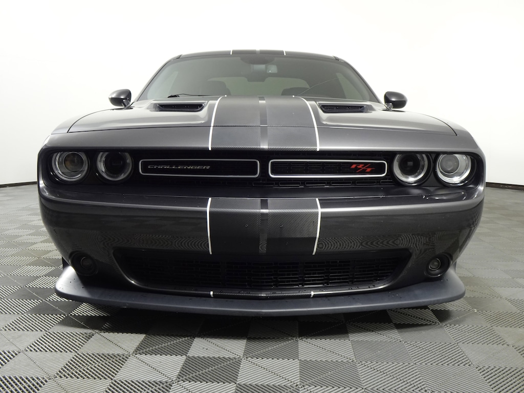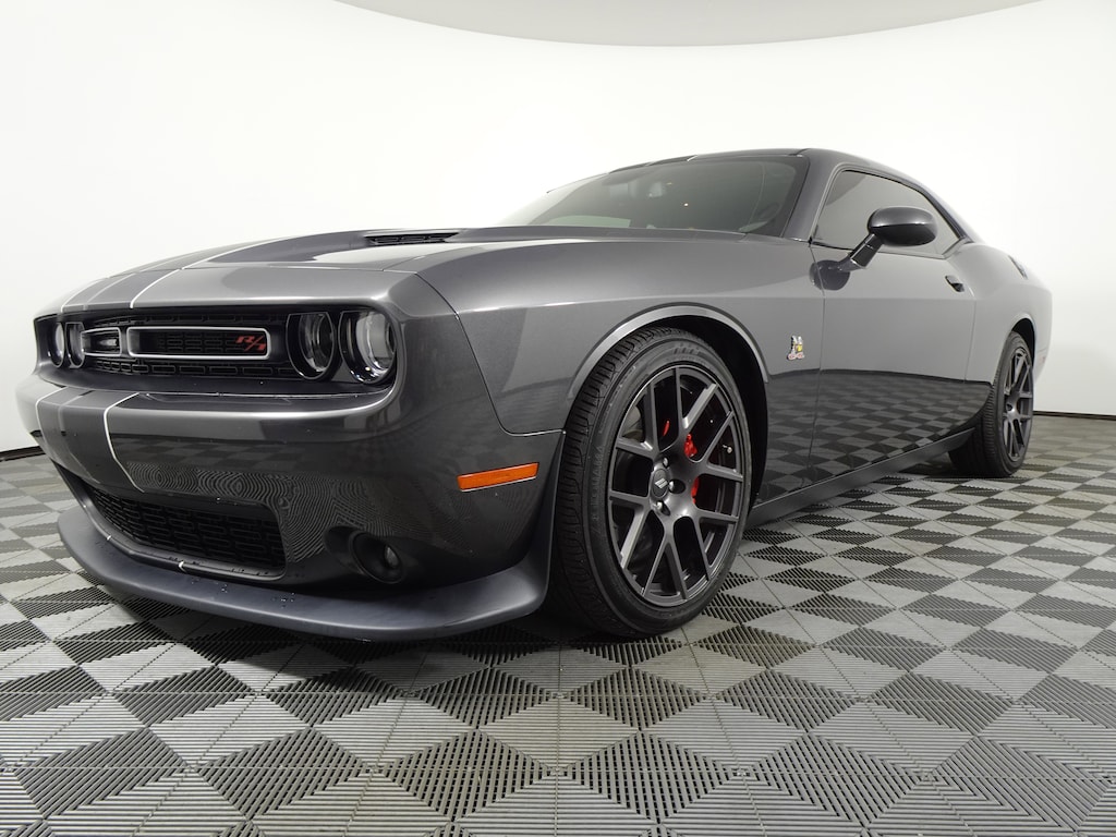 The 2018â¯Challengerâ¯R/Tâ¯Scatâ¯Pack is a muscular twoâ'door coupe built for straightâ'line performance and bold visual presence. Under the hood sits a 6.4â'litre (392â¯cubicâ'inch) HEMI® V8 engine delivering 485â¯horsepower and 475â¯lbâ'ft of torque, making this one of the most potent nonâ'supercharged versions of the Challenger line. The car rides on 20â'inch wheels, features Brembo® brakes and a performanceâ'tuned suspension, giving it capability to match its aggressive styling. Inside, the cabin blends retro cues with modern tech â" premium cloth or optional leather/Alcantara seats embroidered with the âScatâ¯Packâ logo, a large 8.4â'inch Uconnect® touchscreen, and instrumentation oriented for performance. This is a car meant to make a statement: loud, fast, and unapologetically performanceâ'oriented, yet still usable as a daily driver for those who want muscleâ'car flair without full raceâ'car compromise.