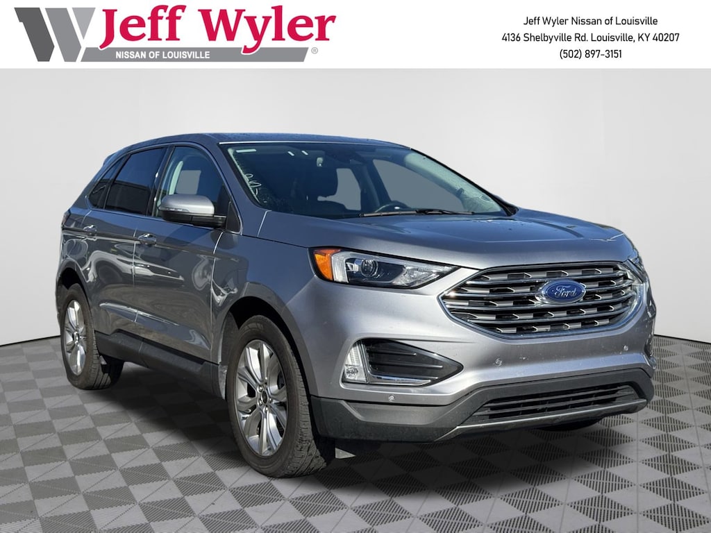 Jeff Wyler Nissan of Louisville is pleased to offer this wonderful-looking 2024 Ford Edge Titanium in Iconic Silver Metallic. ** ALL WHEEL DRIVE/AWD **, ** BALANCE OF FACTORY WARRANTY **, ** ONE-OWNER CARFAX **, ** CLEAN CARFAX REPORT **, ** BLUETOOTH **, ** BACKUP CAMERA **, ** LEATHER INTERIOR **, ** HEATED SEATS **, ** PUSH-BUTTON START **, ** EXCELLENT SERVICE HISTORY **, and ** HOME DELIVERY OPTIONS! ** Equipment Group 300A, AWD, 12 Speakers, 3.80 Axle Ratio, 4-Wheel Disc Brakes, ABS brakes, ActiveX-Trimmed Heated Sport Bucket Seats, Air Conditioning, Alloy wheels, AM/FM radio: SiriusXM with 360L, Auto High-beam Headlights, Auto-dimming Rear-View mirror, Automatic temperature control, Brake assist, Bumpers: body-color, Compass, Delay-off headlights, Driver door bin, Driver vanity mirror, Dual front impact airbags, Dual front side impact airbags, Electronic Stability Control, Emergency communication system: SYNC 4 911 Assist, FordPass Connect, Four wheel independent suspension, Front anti-roll bar, Front Bucket Seats, Front Center Armrest w/Storage, Front dual zone A/C, Front fog lights, Front reading lights, Fully automatic headlights, Garage door transmitter, Heated door mirrors, Heated front seats, Heated steering wheel, Illuminated entry, Knee airbag, Leather steering wheel, Low tire pressure warning, Memory seat, Occupant sensing airbag, Outside temperature display, Overhead airbag, Overhead console, Panic alarm, Passenger door bin, Passenger vanity mirror, Power door mirrors, Power driver seat, Power Liftgate, Power passenger seat, Power steering, Power windows, Radio: B&O Sound System by Bang & Olufsen, Rain sensing wipers, Rear anti-roll bar, Rear reading lights, Rear seat center armrest, Rear window defroster, Rear window wiper, Remote keyless entry, Security system, SiriusXM w/360L, Speed control, Speed-Sensitive Wipers, Split folding rear seat, Spoiler, Steering wheel mounted audio controls, SYNC 4A w/Enhanced Voice Recognition, Tachometer, Telescoping steering wheel, Tilt steering wheel, Traction control, Trip computer, Turn signal indicator mirrors, Variably intermittent wipers, and Wheels: 19" Luster Nickel-Painted Aluminum Our PRE-OWNED vehicles are put through a rigorous 167- POINT QUALITY ASSURANCE INSPECTION along with an average amount of over $1,400.00 SPENT to recondition each vehicle so we can be sure to deliver you the highest quality vehicle like you deserve! ***ONLINE PRICE DOES NOT INCLUDE WYLER FAMILY FIRST PACKAGE*** Stop by 4136 Shelbyville Road to see for yourself, or give us a call @ 502-897-3151 to schedule your test drive! ** ALL WHEEL DRIVE/AWD **, ** BALANCE OF FACTORY WARRANTY **, ** ONE-OWNER CARFAX **, ** CLEAN CARFAX REPORT **, ** BLUETOOTH **, ** BACKUP CAMERA **, ** LEATHER INTERIOR **, ** HEATED SEATS **, ** PUSH-BUTTON START **, ** EXCELLENT SERVICE HISTORY **, AWD, Equipment Group 300A.
