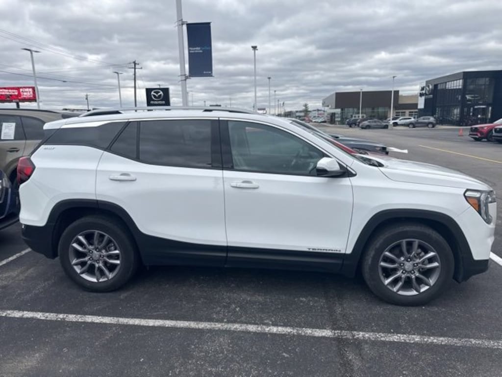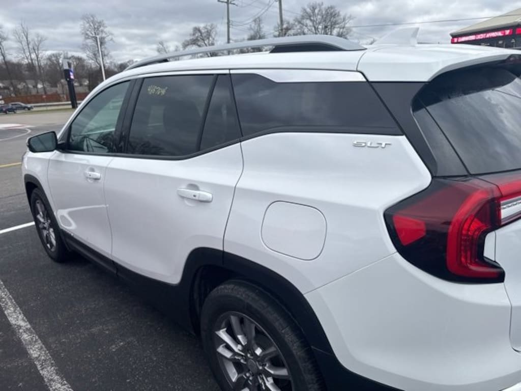 Jeff Wyler Eastgate Auto Mall is pumped up to offer this attractive 2023 GMC Terrain SLT in Summit White. Well equipped with: Floor Liner Package (LPO) (Front & Rear All-Weather Floor Liners (LPO) and Integrated Cargo Liner (LPO)), Infotainment Package II (Premium 7-Speaker Bose Sound System w/Amplifier, Radio: GMC Infotainment Audio System w/Navigation, and SiriusXM Radio), Preferred Equipment Group 4SA, Side Blind Zone & Rear Cross Traffic (Lane Change Alert w/Side Blind Zone Alert and Rear Cross-Traffic Alert), Terrain Pro Safety Plus (Adaptive Cruise Control, Rear Park Assist, and Safety Alert Seat), 2 USB Data Ports, 2 USB Data Ports w/SD Card Reader, 3.47 Axle Ratio, 4-Wheel Disc Brakes, 6 Speakers, 6-Speaker Audio System Feature, 6-Way Power Front Passenger Seat, 8-Way Power Driver Seat Adjuster, ABS brakes, Air Conditioning, Alloy wheels, AM/FM radio: SiriusXM, Auto High-beam Headlights, Auto-dimming Rear-View mirror, Automatic temperature control, Bluetooth® For Phone, Brake assist, Bumpers: body-color, Cold Air Grille Shutter, Compass, Delay-off headlights, Driver & Front Passenger Heated Seats, Driver door bin, Driver vanity mirror, Dual front impact airbags, Dual front side impact airbags, Electronic Stability Control, Emergency communication system: OnStar and GMC connected services capable, Four wheel independent suspension, Front anti-roll bar, Front Bucket Seats, Front Center Armrest, Front dual zone A/C, Front fog lights, Front Passenger 2-Way Power Lumbar, Front reading lights, Fully automatic headlights, Garage door transmitter, Heated door mirrors, Heated front seats, Heated steering wheel, Illuminated entry, Low tire pressure warning, Memory seat, Occupant sensing airbag, Outside temperature display, Overhead airbag, Overhead console, Panic alarm, Passenger door bin, Passenger vanity mirror, Perforated Leather-Appointed Seat Trim, Power door mirrors, Power Driver Lumbar Control, Power driver seat, Power Liftgate, Power passenger seat, Power steering, Power windows, Radio data system, Radio: GMC Infotainment Audio System w/8" Display, Rear anti-roll bar, Rear seat center armrest, Rear window defroster, Rear window wiper, Remote keyless entry, Roof rack: rails only, Security system, Speed control, Speed-sensing steering, Split folding rear seat, Spoiler, Steering wheel mounted audio controls, Tachometer, Telescoping steering wheel, Tilt steering wheel, Traction control, Trip computer, Turn signal indicator mirrors, Variably intermittent wipers, Wheels: 18" x 7" Silver Painted Aluminum, and Wireless Apple CarPlay/Wireless Android Auto. CARFAX One-Owner. Ask about available certifications. Used vehicles 10 years of age or newer with less than 100,000 miles are eligible for the Wyler Assurance Program, but eligible vehicles must pass our reconditioning process and multi-point inspection. Provided the vehicle passes inspection, vehicles will be eligible for the 6 month/6,000 mile limited warranty. The 6 month/6,000 mile limited warranty is NOT available on AS-IS vehicles, wholesale vehicles, lease buyback/pass-thru vehicles or un-inspected vehicles. Note that this program can also apply to vehicles where the remaining factory coverage is less than 6 months or 6,000 miles. Please check the Federal Trade Commission (FTC) Buyers guide on the vehicle for full details as to whether or not warranty coverage may apply. Contact Dealer for additional details. The Wyler Assurance 6 month/6,000 Mile limited warranty ends 6 months from the date of the Retail Purchase Agreement (BUYERS ORDER) or when the vehicle's odometer registers 6,000 additional miles to the mileage listed on the BUYERS ORDER, whichever comes first. Your Deductible - The warranty holder on your contract pays the first $100 of each covered repair.