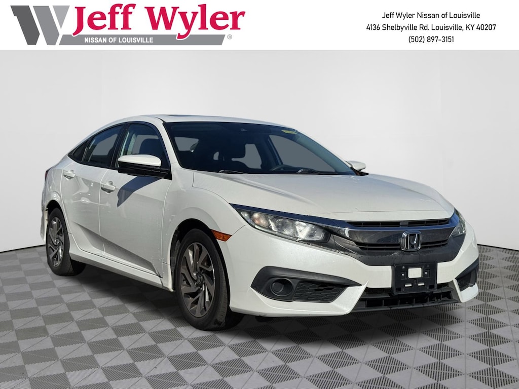 Jeff Wyler Nissan of Louisville is excited to offer this good-looking 2016 Honda Civic EX in . ** HOME DELIVERY OPTIONS! ** Cloth, 16" Alloy Wheels, 4-Wheel Disc Brakes, 8 Speakers, ABS brakes, Air Conditioning, Alloy wheels, AM/FM radio, Apple CarPlay/Android Auto, Automatic temperature control, Brake assist, Bumpers: body-color, Cloth Seat Trim, Compass, Delay-off headlights, Driver door bin, Driver vanity mirror, Dual front impact airbags, Dual front side impact airbags, Electronic Stability Control, Emergency communication system: HondaLink Assist, Exterior Parking Camera Rear, Four wheel independent suspension, Front anti-roll bar, Front Bucket Seats, Front Center Armrest, Front reading lights, Fully automatic headlights, Heated door mirrors, Illuminated entry, Low tire pressure warning, Occupant sensing airbag, Outside temperature display, Overhead airbag, Panic alarm, Passenger door bin, Passenger vanity mirror, Power door mirrors, Power moonroof, Power steering, Power windows, Radio data system, Radio: 180-Watt AM/FM Audio System, Rear anti-roll bar, Rear seat center armrest, Rear window defroster, Reclining Front Bucket Seats, Remote keyless entry, Security system, Speed control, Speed-sensing steering, Speed-Sensitive Wipers, Split folding rear seat, Steering wheel mounted audio controls, Tachometer, Telescoping steering wheel, Tilt steering wheel, Traction control, Trip computer, and Variably intermittent wipers Our PRE-OWNED vehicles are put through a rigorous 167- POINT QUALITY ASSURANCE INSPECTION along with an average amount of over $1,400.00 SPENT to recondition each vehicle so we can be sure to deliver you the highest quality vehicle like you deserve! ***ONLINE PRICE DOES NOT INCLUDE WYLER FAMILY FIRST PACKAGE*** Stop by 4136 Shelbyville Road to see for yourself, or give us a call @ 502-897-3151 to schedule your test drive! Cloth.