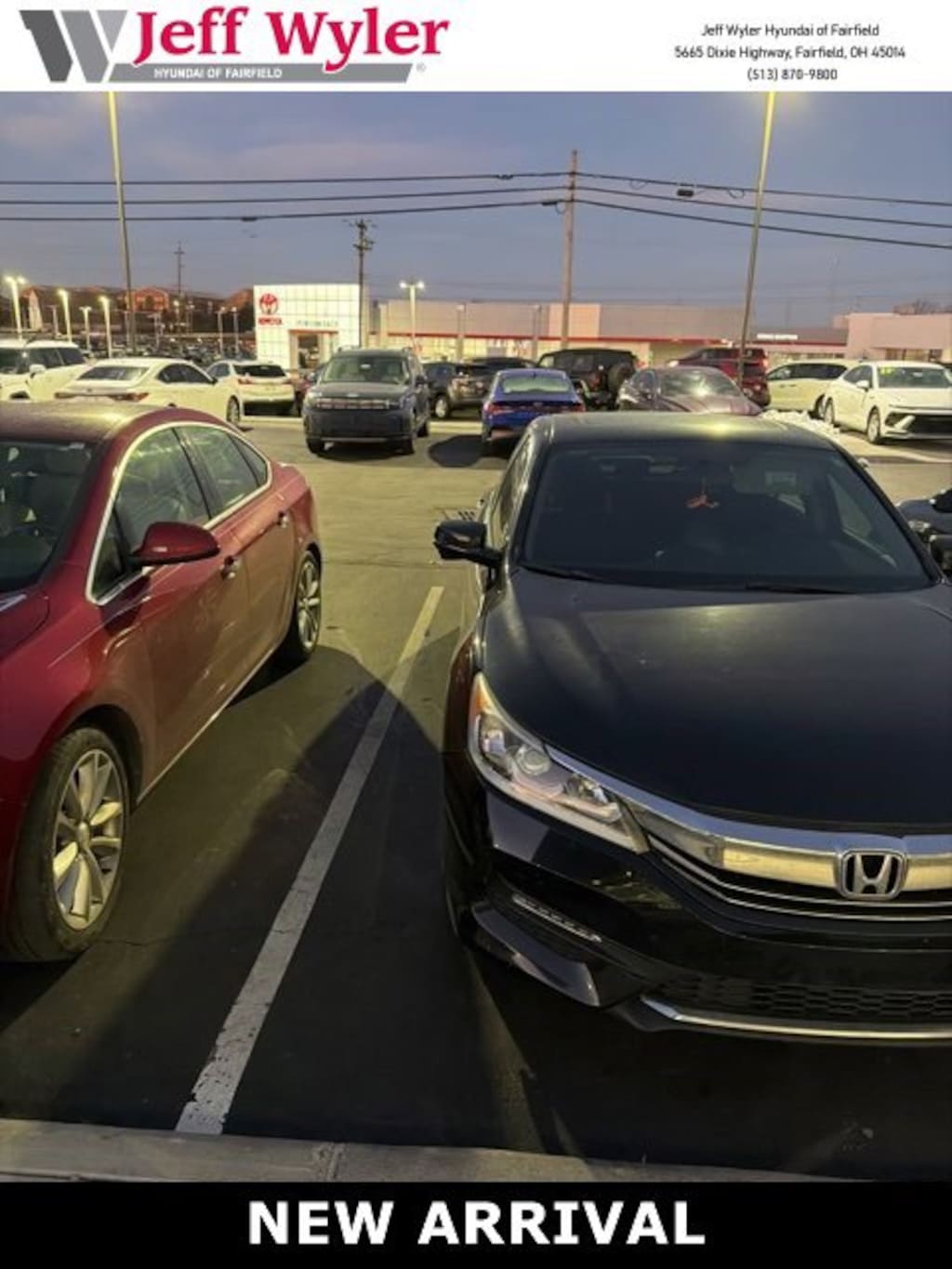 CARFAX One-Owner. Jeff Wyler Hyundai of Fairfield is delighted to offer this superb 2017 Honda Accord EX in Crystal Black Pearl. Well equipped with: Black Cloth, Android Auto, Apple CarPlay, CALL NOW FOR YOUR VIP APPOINTMENT 513-870-9800, FULLY SERVICED w/RECORDS, GUARANTEED FINANCING!! NO MATTER YOUR SITUATION WE CAN GET AN APPROVAL!!, THE #1 Volume dealer in the region! Come see why for yourself Today!!, WE PAY MORE FOR YOUR TRADE!!, 17" Alloy Wheels, 4-Wheel Disc Brakes, 6 Speakers, ABS brakes, Air Conditioning, Alloy wheels, AM/FM radio: SiriusXM, Apple CarPlay/Android Auto, Automatic temperature control, Brake assist, Bumpers: body-color, CD player, Cloth Seat Trim, Delay-off headlights, Driver door bin, Driver vanity mirror, Dual front impact airbags, Dual front side impact airbags, Electronic Stability Control, Emergency communication system: HondaLink, Exterior Parking Camera Rear, Four wheel independent suspension, Front anti-roll bar, Front Bucket Seats, Front Center Armrest, Front dual zone A/C, Front fog lights, Front reading lights, Fully automatic headlights, Garage door transmitter, Heated door mirrors, Illuminated entry, Leather Shift Knob, Low tire pressure warning, Occupant sensing airbag, Outside temperature display, Overhead airbag, Overhead console, Panic alarm, Passenger door bin, Passenger vanity mirror, Power door mirrors, Power driver seat, Power moonroof, Power steering, Power windows, Radio data system, Radio: 160-Watt AM/FM/HD Audio System, Rear anti-roll bar, Rear seat center armrest, Rear window defroster, Remote keyless entry, Security system, Speed control, Speed-sensing steering, Speed-Sensitive Wipers, Split folding rear seat, Steering wheel mounted audio controls, Tachometer, Telescoping steering wheel, Tilt steering wheel, Traction control, Trip computer, Turn signal indicator mirrors, and Variably intermittent wipers. TO CHECK ON THE AVAILABILITY OF THIS VEHICLE REACH OUT TO ONE OF OUR TEAM MEMBERS!! ALSO SHOP ONLINE AT https://www.jeffwylerhyundaioffairfield.com/ Proudly Serving: Cincinnati, Dayton, Columbus, Louisville, Lexington, Indianapolis, Hamilton, Florence, Alexandria, Beavercreek, Springdale, West Chester, Monroe, Fairfield, Kenwood, Newport and all of greater Cincinnati Ohio, Indiana, and Northern Kentucky.