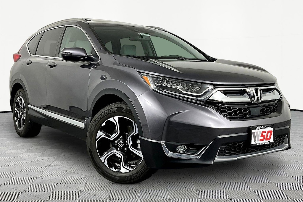 Jeff Wyler Honda of Colerain is excited to offer this good-looking 2019 Honda CR-V Touring in Modern Steel Metallic. Well equipped with: 18" Alloy Wheels, 4-Wheel Disc Brakes, 5.64 Axle Ratio, 9 Speakers, ABS brakes, Air Conditioning, Alloy wheels, AM/FM radio: SiriusXM, Apple CarPlay/Android Auto, Auto High-beam Headlights, Auto-dimming Rear-View mirror, Automatic temperature control, Blind Spot Information (BSI) System warning, Brake assist, Bumpers: body-color, Compass, Delay-off headlights, Driver door bin, Driver vanity mirror, Dual front impact airbags, Dual front side impact airbags, Electronic Stability Control, Exterior Parking Camera Rear, Forward collision: Collision Mitigation Braking System (CMBS) + FCW mitigation, Four wheel independent suspension, Front anti-roll bar, Front Bucket Seats, Front Center Armrest, Front dual zone A/C, Front fog lights, Front reading lights, Fully automatic headlights, Garage door transmitter: HomeLink, Heated door mirrors, Heated Front Bucket Seats, Heated front seats, Illuminated entry, Lane departure: Lane Keeping Assist System (LKAS) active, Leather Seat Trim, Leather Shift Knob, Low tire pressure warning, Memory seat, Navigation system: Honda Satellite-Linked Navigation System, Occupant sensing airbag, Outside temperature display, Overhead airbag, Overhead console, Panic alarm, Passenger door bin, Passenger vanity mirror, Power door mirrors, Power driver seat, Power Liftgate, Power moonroof, Power passenger seat, Power steering, Power windows, Radio data system, Radio: AM/FM/HD/SiriusXM Audio System, Rain sensing wipers, Rear anti-roll bar, Rear seat center armrest, Rear window defroster, Rear window wiper, Remote keyless entry, Roof rack: rails only, Security system, Speed control, Speed-sensing steering, Speed-Sensitive Wipers, Split folding rear seat, Spoiler, Steering wheel mounted audio controls, Tachometer, Telescoping steering wheel, Tilt steering wheel, Traction control, Trip computer, Turn signal indicator mirrors, and Variably intermittent wipers.