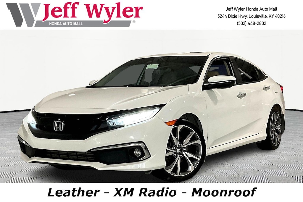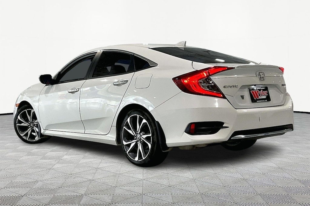 The 2019 Honda Civic Touring is a remarkable vehicle that combines exceptional performance, advanced technology, and unparalleled comfort. With its sleek and sophisticated design, this Civic delivers a driving experience that is both exhilarating and refined.At the heart of this Civic Touring is a turbocharged 1.5L I-4 engine that provides an impressive blend of power and efficiency, delivering 30 city/38 highway MPG. The vehicle's responsive handling and smooth-shifting CVT transmission make it a joy to drive, whether navigating city streets or cruising down the highway.The Civic Touring is equipped with an impressive array of features that cater to your every need:- Backup Camera- Bluetooth- Dual Climate Control- Heated Leather Seats- Power Sunroof- Push Button Start- XM RadioIn addition, this Civic boasts a comprehensive suite of advanced safety technologies, including Collision Mitigation Braking System, Lane Keeping Assist System, and Adaptive Cruise Control, ensuring your peace of mind on the road.The cabin of the Civic Touring is a true sanctuary, with its premium leather seating, heated front and rear seats, and 10-speaker premium audio system. The intuitive infotainment system, complete with Apple CarPlay and Android Auto integration, keeps you connected and entertained throughout your journey.Exterior features, such as the sleek 18-inch alloy wheels, gloss black accents, and bold styling cues, give the Civic Touring a commanding presence on the road. The available power moonroof and rain-sensing wipers add an extra touch of convenience and refinement.This 2019 Honda Civic Touring is a true standout in its class, offering a compelling blend of performance, technology, and luxury. Whether you're commuting to work, embarking on a road trip, or simply enjoying the drive, this Civic is sure to exceed your expectations. Experience the difference for yourself by scheduling a test drive at our showroom today.