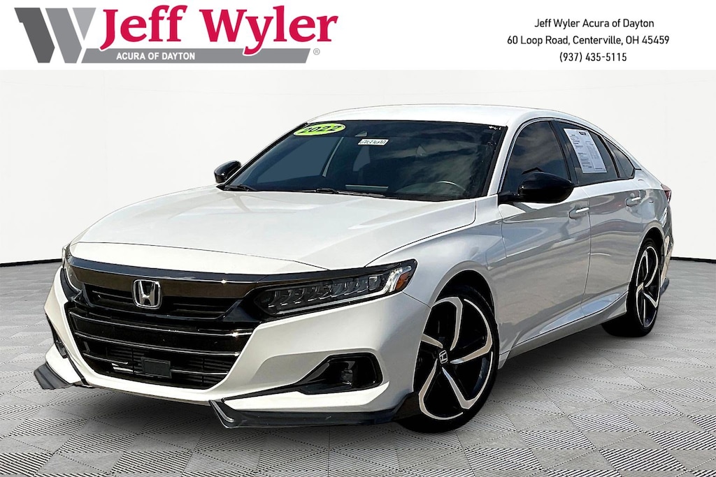 Jeff Wyler Acura of Dayton is pumped up to offer this wonderful 2022 Honda Accord Sport in Platinum White Pearl. Black w/Fabric Seat Trim, 4-Wheel Disc Brakes, 8 Speakers, ABS brakes, Adaptive Cruise Control: Adaptive Cruise Control (ACC) with Low-Speed Follow, Air Conditioning, Alloy wheels, AM/FM radio, Apple CarPlay/Android Auto, Auto High-beam Headlights, Automatic temperature control, Brake assist, Bumpers: body-color, Delay-off headlights, Driver door bin, Driver vanity mirror, Dual front impact airbags, Dual front side impact airbags, Electronic Stability Control, Emergency communication system: HondaLink, Exterior Parking Camera Rear, Fabric w/Synthetic Leather Seat Trim, Forward collision: Collision Mitigation Braking System (CMBS) + FCW mitigation, Four wheel independent suspension, Front anti-roll bar, Front Bucket Seats, Front Center Armrest, Front dual zone A/C, Front fog lights, Front reading lights, Fully automatic headlights, Illuminated entry, Knee airbag, Lane Departure Warning System, Leather Shift Knob, Leather steering wheel, Low tire pressure warning, Occupant sensing airbag, Outside temperature display, Overhead airbag, Overhead console, Panic alarm, Passenger door bin, Passenger vanity mirror, Power door mirrors, Power driver seat, Power steering, Power windows, Radio data system, Radio: 180-Watt AM/FM Audio System, Rear anti-roll bar, Rear seat center armrest, Rear window defroster, Remote keyless entry, Security system, Speed control, Speed-sensing steering, Speed-Sensitive Wipers, Split folding rear seat, Spoiler, Steering wheel mounted audio controls, Tachometer, Telescoping steering wheel, Tilt steering wheel, Traction control, Trip computer, Variably intermittent wipers, and Wheels: 19" Machine-Finished Alloy w/Black Inserts Our PRE-OWNED vehicles are put through a rigorous 167- POINT QUALITY ASSURANCE INSPECTION along with an average amount of over $1,400.00 SPENT to recondition each vehicle so we can be sure to deliver you the highest quality vehicle like you deserve! ***ONLINE PRICE DOES NOT INCLUDE WYLER FAMILY FIRST PACKAGE*** CARFAX One-Owner. Clean CARFAX.