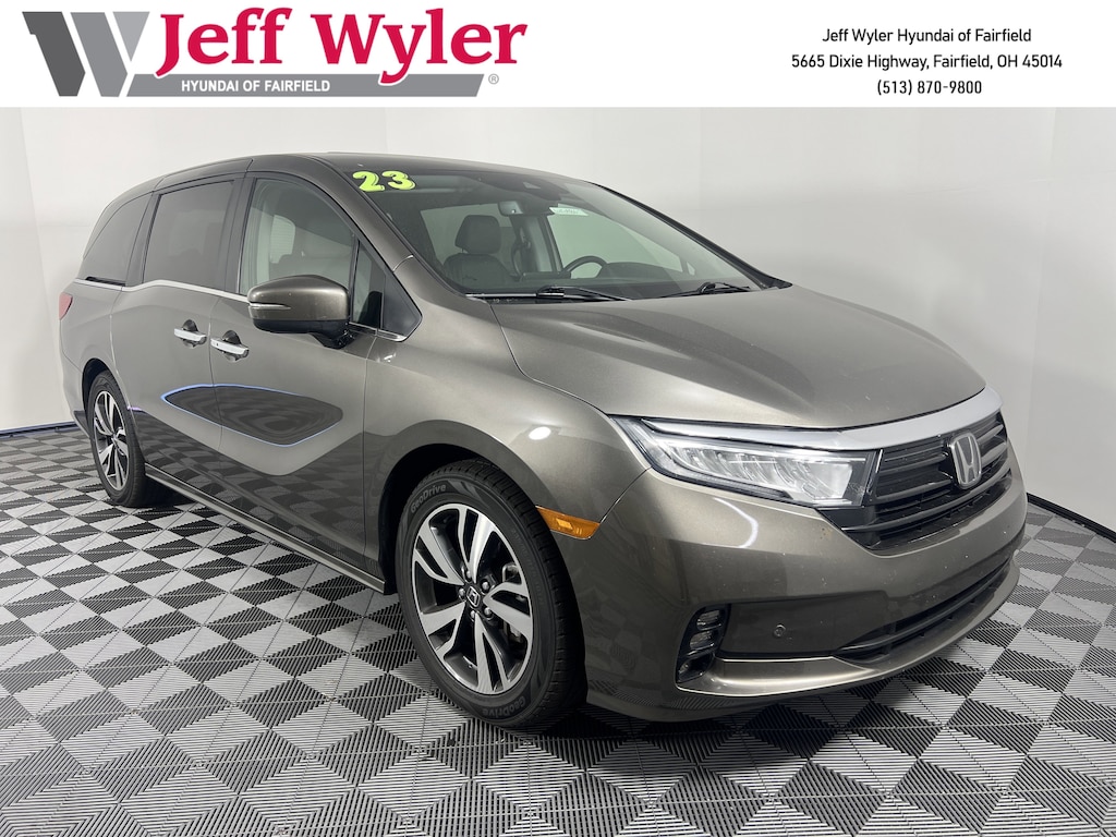 CARFAX One-Owner. Clean CARFAX. Jeff Wyler Hyundai of Fairfield is very proud to offer this gorgeous 2023 Honda Odyssey Touring in Pacific Pewter Metallic. Well equipped with: Android Auto, Apple CarPlay, CALL NOW FOR YOUR VIP APPOINTMENT 513-870-9800, FULLY SERVICED w/RECORDS, GUARANTEED FINANCING!! NO MATTER YOUR SITUATION WE CAN GET AN APPROVAL!!, THE #1 Volume dealer in the region! Come see why for yourself Today!!, WE PAY MORE FOR YOUR TRADE!!, 3.61 Axle Ratio, 3rd row seats: split-bench, 4-Wheel Disc Brakes, 7 Speakers, A/V remote: CabinControl, ABS brakes, Adaptive Cruise Control: Adaptive Cruise Control (ACC) with Low-Speed Follow, Air Conditioning, Alloy wheels, AM/FM radio: SiriusXM, Anti-whiplash front head restraints, Apple CarPlay/Android Auto, Auto High-beam Headlights, Auto-dimming Rear-View mirror, Automatic temperature control, Blind Spot Information (BSI) System warning, Brake assist, Bumpers: body-color, CD player, Compass, Delay-off headlights, Driver door bin, Driver vanity mirror, Driver's Seat Mounted Armrest, Dual front impact airbags, Dual front side impact airbags, DVD-Audio, Electronic Stability Control, Emergency communication system: HondaLink, Exterior Parking Camera Rear, Four wheel independent suspension, Front anti-roll bar, Front Bucket Seats, Front dual zone A/C, Front fog lights, Front reading lights, Fully automatic headlights, Garage door transmitter: HomeLink, Headphones, Heated door mirrors, Heated Front Bucket Seats, Heated front seats, Illuminated entry, Knee airbag, Lane departure: Lane Keeping Assist System (LKAS) active, Leather Seat Trim, Leather steering wheel, Low tire pressure warning, Memory seat, Navigation system: Honda Satellite-Linked Navigation System, Occupant sensing airbag, Outside temperature display, Overhead airbag, Overhead console, Panic alarm, Passenger door bin, Passenger seat mounted armrest, Passenger vanity mirror, Power door mirrors, Power driver seat, Power Liftgate, Power moonroof, Power passenger seat, Power steering, Power windows, Radio data system, Radio: 160-Watt AM/FM/HD/SiriusXM Audio System, Rear air conditioning, Rear anti-roll bar, Rear audio controls, Rear reading lights, Rear seat center armrest, Rear window defroster, Rear window wiper, Reclining 3rd row seat, Remote keyless entry, Security system, Speed control, Speed-sensing steering, Speed-Sensitive Wipers, Split folding rear seat, Spoiler, Steering wheel mounted audio controls, Tachometer, Telescoping steering wheel, Tilt steering wheel, Traction control, Trip computer, Turn signal indicator mirrors, Variably intermittent wipers, and Wheels: 19" Machine-Finished Alloy. TO CHECK ON THE AVAILABILITY OF THIS VEHICLE REACH OUT TO ONE OF OUR TEAM MEMBERS!! ALSO SHOP ONLINE AT https://www.jeffwylerhyundaioffairfield.com/ Proudly Serving: Cincinnati, Dayton, Columbus, Louisville, Lexington, Indianapolis, Hamilton, Florence, Alexandria, Beavercreek, Springdale, West Chester, Monroe, Fairfield, Kenwood, Newport and all of greater Cincinnati Ohio, Indiana, and Northern Kentucky.