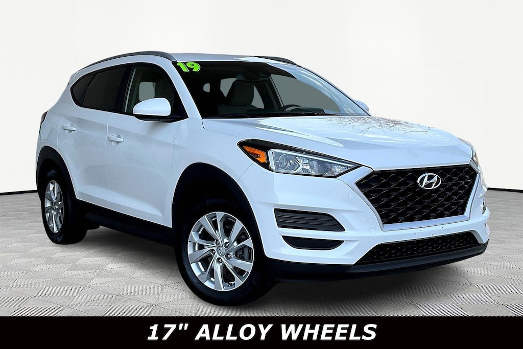 Jeff Wyler Springfield Auto Mall is very proud to offer this fantastic 2019 Hyundai Tucson Value in Dazzling White. Well equipped with: Option Group 01, 17" x 7.0J Alloy Wheels, 4-Wheel Disc Brakes, 6 Speakers, ABS brakes, Air Conditioning, Alloy wheels, AM/FM radio: SiriusXM, Apple CarPlay & Android Auto, Axle Ratio: 3.648, Brake assist, Bumpers: body-color, Cargo Cover, Carpeted Floor Mats, Delay-off headlights, Driver door bin, Driver vanity mirror, Dual front impact airbags, Dual front side impact airbags, Electronic Stability Control, Emergency communication system: Blue Link, Exterior Parking Camera Rear, Four wheel independent suspension, Front anti-roll bar, Front Bucket Seats, Front Center Armrest, Front reading lights, Fully automatic headlights, Heated door mirrors, Heated Front Bucket Seats, Heated front seats, Illuminated entry, Low tire pressure warning, Occupant sensing airbag, Outside temperature display, Overhead airbag, Overhead console, Panic alarm, Passenger door bin, Passenger vanity mirror, Power door mirrors, Power driver seat, Power steering, Power windows, Radio: AM/FM/SiriusXM Audio System, Rear anti-roll bar, Rear seat center armrest, Rear window defroster, Rear window wiper, Remote keyless entry, Reversible Cargo Tray, Roof rack: rails only, Security system, Speed control, Speed-sensing steering, Split folding rear seat, Spoiler, Steering wheel mounted audio controls, Tachometer, Telescoping steering wheel, Tilt steering wheel, Traction control, Trip computer, Variably intermittent wipers, and YES Essentials Cloth Seat Trim. Ask about available certifications. Used vehicles 10 years of age or newer with less than 100,000 miles are eligible for the Wyler Assurance Program, but eligible vehicles must pass our reconditioning process and multi-point inspection. Provided the vehicle passes inspection, vehicles will be eligible for the 6 month/6,000 mile limited warranty. The 6 month/6,000 mile limited warranty is NOT available on AS-IS vehicles, wholesale vehicles, lease buyback/pass-thru vehicles or un-inspected vehicles. Note that this program can also apply to vehicles where the remaining factory coverage is less than 6 months or 6,000 miles. Please check the Federal Trade Commission (FTC) Buyers guide on the vehicle for full details as to whether or not warranty coverage may apply. Contact Dealer for additional details. The Wyler Assurance 6 month/6,000 Mile limited warranty ends 6 months from the date of the Retail Purchase Agreement (BUYERS ORDER) or when the vehicle's odometer registers 6,000 additional miles to the mileage listed on the BUYERS ORDER, whichever comes first. Your Deductible - The warranty holder on your contract pays the first $100 of each covered repair.