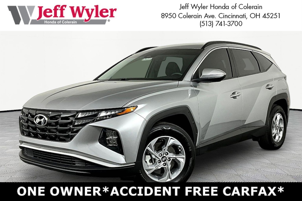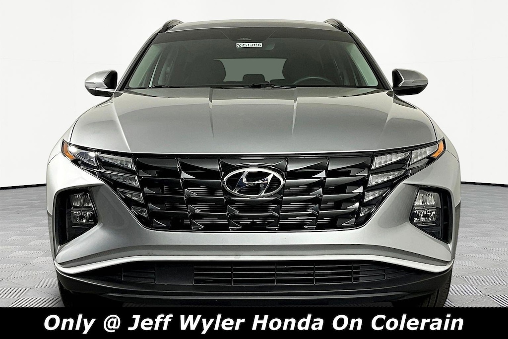 Jeff Wyler Honda of Colerain is pumped up to offer this wonderful-looking 2023 Hyundai Tucson SEL in Shimmering Silver. Well equipped with: Option Group 01, 3.648 Axle Ratio, 4-Wheel Disc Brakes, 6 Speakers, ABS brakes, Air Conditioning, Alloy wheels, AM/FM radio: SiriusXM, Apple CarPlay & Android Auto, Auto High-beam Headlights, Brake assist, Bumpers: body-color, Cargo Net, Cargo Tray, Carpeted Floor Mats, Delay-off headlights, Driver door bin, Driver vanity mirror, Dual front impact airbags, Dual front side impact airbags, Electronic Stability Control, Emergency communication system: Blue Link Connected Car Service (3-year complimentary subscription), First Aid Kit, Four wheel independent suspension, Front and Rear Mudguards, Front anti-roll bar, Front Bucket Seats, Front Center Armrest, Front reading lights, Fully automatic headlights, H-Tex Seat Trim, Heated door mirrors, Heated Front Bucket Seats, Heated front seats, Illuminated entry, Low tire pressure warning, Occupant sensing airbag, Outside temperature display, Overhead airbag, Overhead console, Panic alarm, Passenger door bin, Passenger vanity mirror, Power door mirrors, Power driver seat, Power Liftgate, Power steering, Power windows, Radio data system, Radio: AM/FM/HD/SiriusXM Audio System, Rear anti-roll bar, Rear Bumper Applique, Rear seat center armrest, Rear window defroster, Rear window wiper, Remote keyless entry, Roof rack: rails only, Security system, Speed control, Split folding rear seat, Spoiler, Stain & Odor Resistant Cloth Seat Trim, Steering wheel mounted audio controls, Tachometer, Telescoping steering wheel, Tilt steering wheel, Traction control, Trip computer, Turn signal indicator mirrors, Variably intermittent wipers, Wheel Locks, and Wheels: 17" x 7.0J" Alloy.
