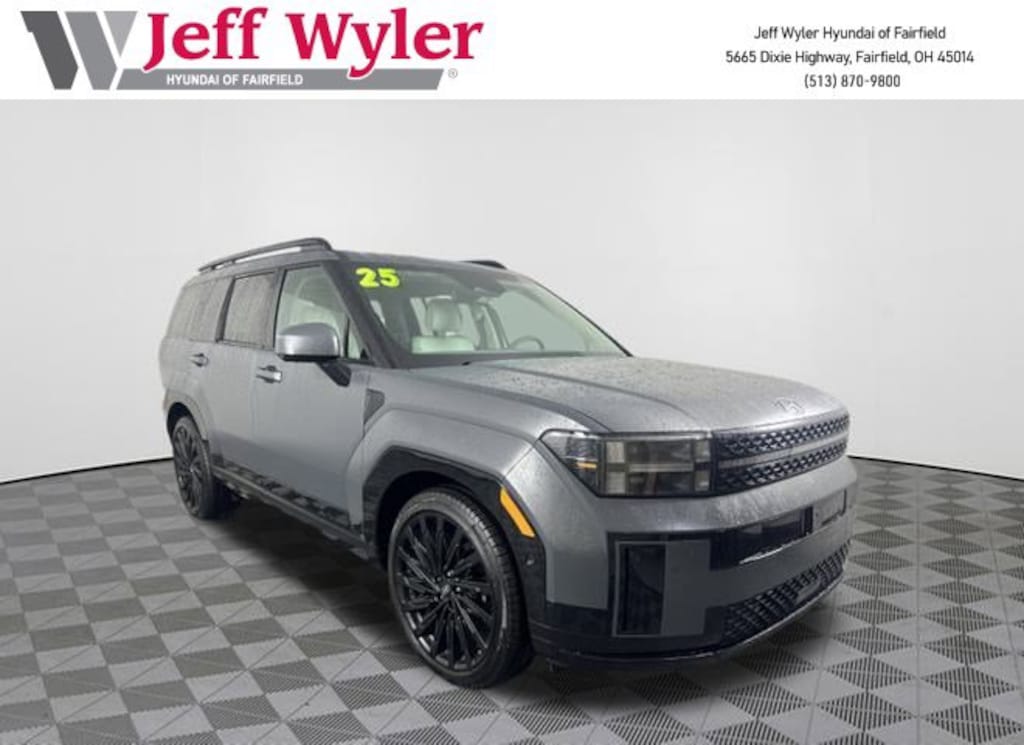 CARFAX One-Owner. Jeff Wyler Hyundai of Fairfield is very proud to offer this outstanding 2025 Hyundai Santa Fe Calligraphy in Ecotronic Gray Matte. Well equipped with: Option Group 01, AWD, Gray Leather, Android Auto, Apple CarPlay, CALL NOW FOR YOUR VIP APPOINTMENT 513-870-9800, FULLY SERVICED w/RECORDS, GUARANTEED FINANCING!! NO MATTER YOUR SITUATION WE CAN GET AN APPROVAL!!, THE #1 Volume dealer in the region! Come see why for yourself Today!!, WE PAY MORE FOR YOUR TRADE!!, 12 Speakers, 3rd row seats: bench, 4-Wheel Disc Brakes, ABS brakes, Air Conditioning, Alloy wheels, AM/FM radio: SiriusXM, Apple CarPlay & Android Auto, Auto High-beam Headlights, Auto-dimming Rear-View mirror, Automatic temperature control, Brake assist, Bumpers: body-color, Cargo Blocks, Cargo Cover, Carpeted Floor Mats, Delay-off headlights, Driver door bin, Driver vanity mirror, Dual front impact airbags, Dual front side impact airbags, Electronic Stability Control, Emergency communication system, Exterior Parking Camera Rear, First Aid Kit, Four wheel independent suspension, Front anti-roll bar, Front Bucket Seats, Front Center Armrest, Front dual zone A/C, Front reading lights, Fully automatic headlights, Garage door transmitter: HomeLink, Heads-Up Display, Heated & Ventilated Front Bucket Seats, Heated door mirrors, Heated front seats, Heated rear seats, Heated steering wheel, Illuminated entry, Knee airbag, Leather steering wheel, Low tire pressure warning, Memory seat, Navigation System, Occupant sensing airbag, Outside temperature display, Overhead airbag, Overhead console, Panic alarm, Passenger door bin, Passenger vanity mirror, Power door mirrors, Power driver seat, Power Liftgate, Power moonroof, Power passenger seat, Power steering, Power windows, Premium Nappa Leather Seat Trim, Radio: AM/FM/HD Bose Premium Audio System, Rain sensing wipers, Rear anti-roll bar, Rear side impact airbag, Rear window defroster, Rear window wiper, Remote keyless entry, Security system, Speed control, Speed-sensing steering, Split folding rear seat, Spoiler, Steering wheel mounted audio controls, Tachometer, Telescoping steering wheel, Tilt steering wheel, Traction control, Trip computer, Turn signal indicator mirrors, Variably intermittent wipers, Ventilated front seats, and Wheels: 21" x 8.5J Unique Dark Finish Alloy. TO CHECK ON THE AVAILABILITY OF THIS VEHICLE REACH OUT TO ONE OF OUR TEAM MEMBERS!! ALSO SHOP ONLINE AT https://www.jeffwylerhyundaioffairfield.com/ Proudly Serving: Cincinnati, Dayton, Columbus, Louisville, Lexington, Indianapolis, Hamilton, Florence, Alexandria, Beavercreek, Springdale, West Chester, Monroe, Fairfield, Kenwood, Newport and all of greater Cincinnati Ohio, Indiana, and Northern Kentucky.