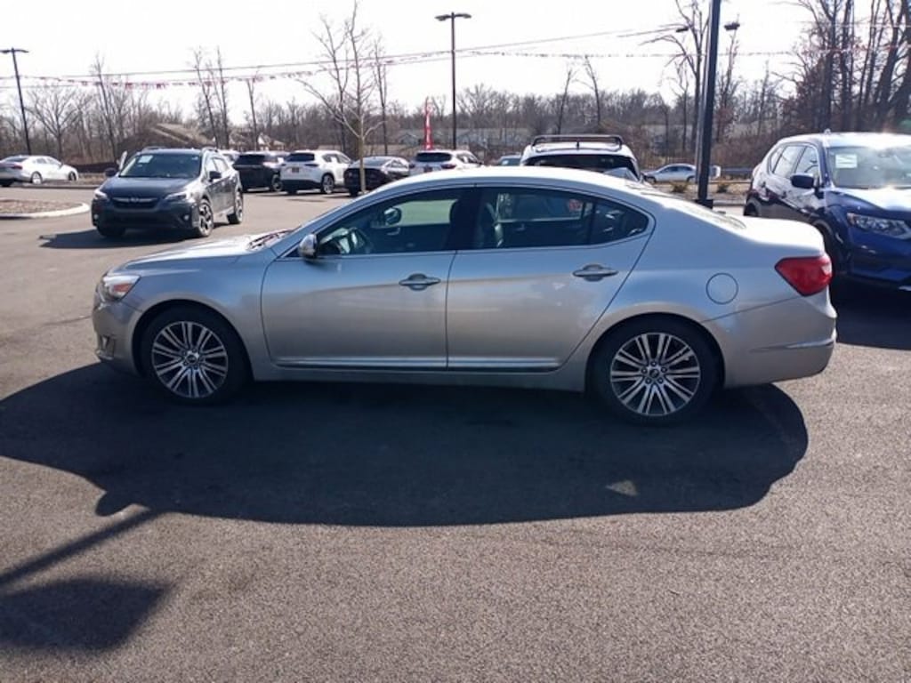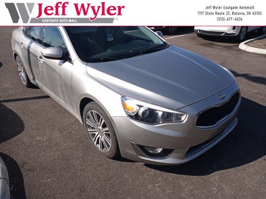 Jeff Wyler Eastgate Auto Mall is pleased to offer this charming 2014 Kia Cadenza Premium in Satin Metal. Well equipped with: 12 Speakers, 18" x 7.5" Alloy Wheels, 4-Wheel Disc Brakes, ABS brakes, Air Conditioning, Alloy wheels, AM/FM radio: SiriusXM, Auto-dimming Rear-View mirror, Automatic temperature control, Bodyside moldings, Brake assist, Bumper Applique, Bumpers: body-color, CD player, Compass, Delay-off headlights, Driver door bin, Driver vanity mirror, Dual front impact airbags, Dual front side impact airbags, Electronic Stability Control, Exterior Parking Camera Rear, Four wheel independent suspension, Front anti-roll bar, Front Bucket Seats, Front Center Armrest, Front dual zone A/C, Front fog lights, Front reading lights, Fully automatic headlights, Garage door transmitter: HomeLink, Heated door mirrors, Heated front seats, Illuminated entry, Leather Seat Trim, Leather steering wheel, Low tire pressure warning, Navigation System, Occupant sensing airbag, Outside temperature display, Overhead airbag, Overhead console, Panic alarm, Passenger door bin, Passenger vanity mirror, Power door mirrors, Power driver seat, Power passenger seat, Power steering, Power windows, Premium Nappa Leather Seat Trim, Radio data system, Radio: INFINITI Audio System w/AM/FM/CD/MP3/NAV, Rain sensing wipers, Rear anti-roll bar, Rear Parking Sensors, Rear reading lights, Rear seat center armrest, Rear side impact airbag, Rear window defroster, Remote keyless entry, Security system, Speed control, Speed-sensing steering, Steering wheel mounted audio controls, Tachometer, Telescoping steering wheel, Tilt steering wheel, Traction control, Trip computer, Turn signal indicator mirrors, and Variably intermittent wipers. Reviews: * Strong V6; upscale interior; easy-to-use electronics interface; generous standard features and warranty coverage. Source: EdmundsAwards: * 2014 KBB.com Brand Image Awards Ask about available certifications. Used vehicles 10 years of age or newer with less than 100,000 miles are eligible for the Wyler Assurance Program, but eligible vehicles must pass our reconditioning process and multi-point inspection. Provided the vehicle passes inspection, vehicles will be eligible for the 6 month/6,000 mile limited warranty. The 6 month/6,000 mile limited warranty is NOT available on AS-IS vehicles, wholesale vehicles, lease buyback/pass-thru vehicles or un-inspected vehicles. Note that this program can also apply to vehicles where the remaining factory coverage is less than 6 months or 6,000 miles. Please check the Federal Trade Commission (FTC) Buyers guide on the vehicle for full details as to whether or not warranty coverage may apply. Contact Dealer for additional details. The Wyler Assurance 6 month/6,000 Mile limited warranty ends 6 months from the date of the Retail Purchase Agreement (BUYERS ORDER) or when the vehicle's odometer registers 6,000 additional miles to the mileage listed on the BUYERS ORDER, whichever comes first. Your Deductible - The warranty holder on your contract pays the first $100 of each covered repair.