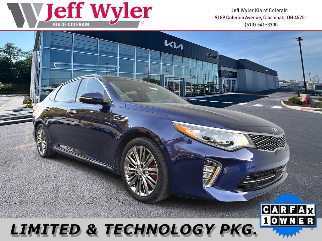 Jeff Wyler Kia of Colerain is honored to offer this good-looking 2018 Kia Optima SX in Horizon Blue. Limited Package (Black) (Chrome Accent Front/Rear Bumpers, Chrome Accent Side Sills, Heated Leather-Wrapped D-Shaped Steering Wheel, Heated Rear Outboard Seats, Nappa Leather Seat Trim, Premium Black Suede Headliner & Pillar Covers, Rear Side Window Sun Shades, Surround View Monitor, and Wheels: 7.5J x 18" Alloy w/Chrome Machine Finish), Technology Package (Advanced Smart Cruise Control, Autonomous Emergency Braking (AEB), Electronic Parking Brake, Front Collision Warning System, High Beam Assist, Lane Departure Warning System, and Radio: AM/FM/MP3/SiriusXM Premium Audio System), 4-Wheel Disc Brakes, 6 Speakers, ABS brakes, Air Conditioning, Alloy wheels, AM/FM radio: SiriusXM, Anti-whiplash front head restraints, Apple CarPlay & Android Auto, Auto-dimming Rear-View mirror, Automatic temperature control, Brake assist, Bumpers: body-color, Cargo Mat, Cargo Net, Delay-off headlights, Driver door bin, Driver vanity mirror, Dual front impact airbags, Dual front side impact airbags, Electronic Stability Control, Emergency communication system, Exterior Parking Camera Rear, Four wheel independent suspension, Front anti-roll bar, Front Bucket Seats, Front Center Armrest, Front dual zone A/C, Front fog lights, Front reading lights, Fully automatic headlights, Heated & Ventilated Front Bucket Seats, Heated door mirrors, Heated front seats, Illuminated entry, Knee airbag, Leather Seat Trim, Leather Shift Knob, Leather steering wheel, Low tire pressure warning, Memory seat, Navigation System, Occupant sensing airbag, Outside temperature display, Overhead airbag, Overhead console, Panic alarm, Passenger door bin, Passenger vanity mirror, Power door mirrors, Power driver seat, Power moonroof, Power passenger seat, Power steering, Power windows, Radio data system, Radio: AM/FM/MP3/SiriusXM Audio System, Rear anti-roll bar, Rear Parking Sensors, Rear reading lights, Rear seat center armrest, Rear window defroster, Remote keyless entry, Security system, Speed control, Speed-sensing steering, Split folding rear seat, Spoiler, Sport steering wheel, Steering wheel mounted audio controls, Tachometer, Telescoping steering wheel, Tilt steering wheel, Traction control, Trip computer, Turn signal indicator mirrors, Variably intermittent wipers, Ventilated front seats, and Wheels: 7.5J x 18" Alloy w/Machine Finish Our PRE-OWNED vehicles are put through a rigorous 167- POINT QUALITY ASSURANCE INSPECTION along with an average amount of over $1,400.00 SPENT to recondition each vehicle so we can be sure to deliver you the highest quality vehicle like you deserve! ***ONLINE PRICE DOES NOT INCLUDE WYLER FAMILY FIRST PACKAGE***
