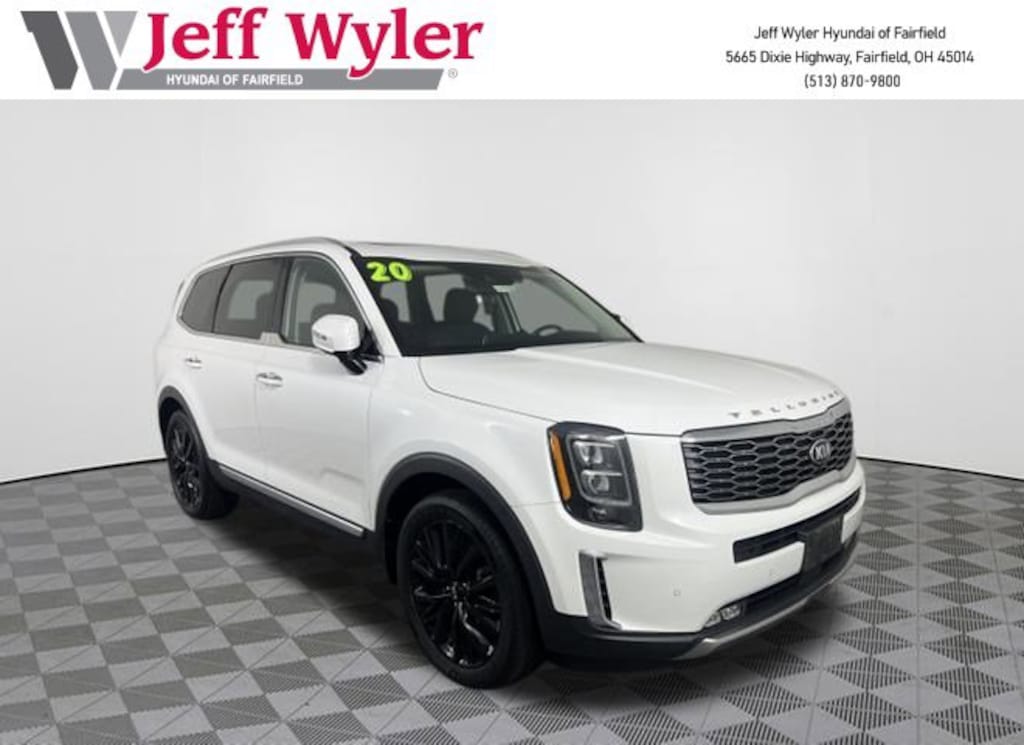 CARFAX One-Owner. Jeff Wyler Hyundai of Fairfield is proud to offer this good-looking 2020 Kia Telluride SX in Snow White Pearl. Well equipped with: Android Auto, Apple CarPlay, CALL NOW FOR YOUR VIP APPOINTMENT 513-870-9800, FULLY SERVICED w/RECORDS, GUARANTEED FINANCING!! NO MATTER YOUR SITUATION WE CAN GET AN APPROVAL!!, THE #1 Volume dealer in the region! Come see why for yourself Today!!, WE PAY MORE FOR YOUR TRADE!!, 10 Speakers, 3.648 Axle Ratio, 3rd row seats: split-bench, 4-Wheel Disc Brakes, ABS brakes, Air Conditioning, Alloy wheels, AM/FM radio: SiriusXM, Apple CarPlay & Android Auto, Auto High-beam Headlights, Auto-dimming Rear-View mirror, Automatic temperature control, Brake assist, Bumpers: body-color, Carpeted Floor Mats, Compass, Delay-off headlights, Driver door bin, Driver vanity mirror, Dual front impact airbags, Dual front side impact airbags, Electronic Stability Control, Emergency communication system: 911 Connect, Four wheel independent suspension, Front anti-roll bar, Front Bucket Seats, Front Center Armrest, Front dual zone A/C, Front fog lights, Front reading lights, Fully automatic headlights, Garage door transmitter: HomeLink, Heated & Ventilated Front Bucket Seats, Heated door mirrors, Heated front seats, Heated Steering Wheel, Heated steering wheel, Hybrid Cargo Net, Illuminated entry, Knee airbag, Leather Shift Knob, Leather steering wheel, Leather-Trimmed Upholstery, Low tire pressure warning, Memory seat, Mud Guard Kit, Navigation System, Occupant sensing airbag, Outside temperature display, Overhead airbag, Overhead console, Panic alarm, Passenger door bin, Passenger vanity mirror, Power door mirrors, Power driver seat, Power Liftgate, Power moonroof, Power passenger seat, Power steering, Power windows, Radio data system, Radio: AM/FM/MP3/SiriusXM Audio System, Rear air conditioning, Rear anti-roll bar, Rear audio controls, Rear reading lights, Rear window defroster, Rear window wiper, Reclining 3rd row seat, Remote keyless entry, Roof rack: rails only, Security system, Speed control, Speed-sensing steering, Split folding rear seat, Spoiler, Steering wheel mounted audio controls, Tachometer, Telescoping steering wheel, Tilt steering wheel, Traction control, Trip computer, Turn signal indicator mirrors, Variably intermittent wipers, Ventilated front seats, and Wheels: 7.5" x 20" Black Finish Sport Alloy. TO CHECK ON THE AVAILABILITY OF THIS VEHICLE REACH OUT TO ONE OF OUR TEAM MEMBERS!! ALSO SHOP ONLINE AT https://www.jeffwylerhyundaioffairfield.com/ Proudly Serving: Cincinnati, Dayton, Columbus, Louisville, Lexington, Indianapolis, Hamilton, Florence, Alexandria, Beavercreek, Springdale, West Chester, Monroe, Fairfield, Kenwood, Newport and all of greater Cincinnati Ohio, Indiana, and Northern Kentucky.