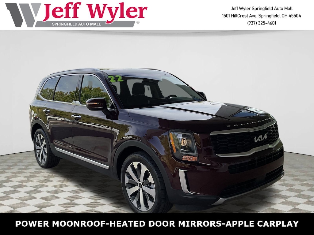 Jeff Wyler Springfield Auto Mall is pleased to offer this fantastic-looking 2022 Kia Telluride S in Sangria. Well equipped with: 20" x 7.5" Machined Alloy Wheels, 3.648 Axle Ratio, 3rd row seats: split-bench, 4-Wheel Disc Brakes, 6 Speakers, ABS brakes, Air Conditioning, Alloy wheels, AM/FM radio: SiriusXM, Apple CarPlay & Android Auto, Automatic temperature control, Brake assist, Bumpers: body-color, Cargo Seatback Up Mat, Carpeted Floor Mats, Delay-off headlights, Driver door bin, Driver vanity mirror, Dual front impact airbags, Dual front side impact airbags, EC Mirror w/Compass & HomeLink, Electronic Stability Control, Emergency communication system: 911 Connect, Four wheel independent suspension, Front anti-roll bar, Front Bucket Seats, Front Center Armrest, Front dual zone A/C, Front reading lights, Fully automatic headlights, Heated door mirrors, Heated Front Bucket Seats, Heated front seats, Illuminated entry, Knee airbag, Leather Shift Knob, Leather steering wheel, Low tire pressure warning, Multicolored Interior Light Kit, Navigation System, Occupant sensing airbag, Outside temperature display, Overhead airbag, Overhead console, Panic alarm, Passenger door bin, Passenger vanity mirror, Power door mirrors, Power driver seat, Power moonroof, Power steering, Power windows, Radio data system, Radio: AM/FM Display Audio System, Rear air conditioning, Rear anti-roll bar, Rear audio controls, Rear reading lights, Rear window defroster, Rear window wiper, Reclining 3rd row seat, Remote keyless entry, Roof rack: rails only, Security system, Smart Key w/ Push Button and Remote Start, Speed control, Speed-sensing steering, Split folding rear seat, Spoiler, Steering wheel mounted audio controls, Synthetic Leather Seat Trim, Tachometer, Telescoping steering wheel, Tilt steering wheel, Traction control, Trip computer, Turn signal indicator mirrors, and Variably intermittent wipers. Ask about available certifications. Used vehicles 10 years of age or newer with less than 100,000 miles are eligible for the Wyler Assurance Program, but eligible vehicles must pass our reconditioning process and multi-point inspection. Provided the vehicle passes inspection, vehicles will be eligible for the 6 month/6,000 mile limited warranty. The 6 month/6,000 mile limited warranty is NOT available on AS-IS vehicles, wholesale vehicles, lease buyback/pass-thru vehicles or un-inspected vehicles. Note that this program can also apply to vehicles where the remaining factory coverage is less than 6 months or 6,000 miles. Please check the Federal Trade Commission (FTC) Buyers guide on the vehicle for full details as to whether or not warranty coverage may apply. Contact Dealer for additional details. The Wyler Assurance 6 month/6,000 Mile limited warranty ends 6 months from the date of the Retail Purchase Agreement (BUYERS ORDER) or when the vehicle's odometer registers 6,000 additional miles to the mileage listed on the BUYERS ORDER, whichever comes first. Your Deductible - The warranty holder on your contract pays the first $100 of each covered repair.