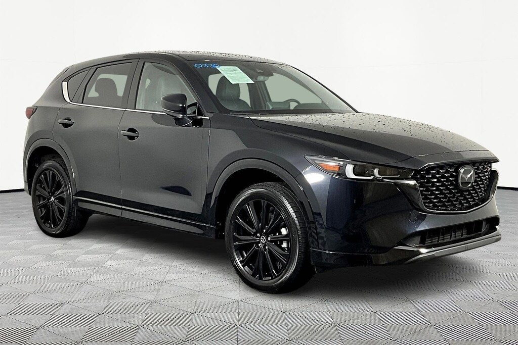 Jeff Wyler Eastgate Auto Mall is excited to offer this fantastic-looking 2023 Mazda CX-5 2.5 Turbo in Jet Black Mica. Well equipped with: 10 Speakers, 4-Wheel Disc Brakes, 4.411 Axle Ratio, ABS brakes, Air Conditioning, Alloy wheels, AM/FM radio: SiriusXM, AppLink/Apple CarPlay and Android Auto, Auto High-beam Headlights, Auto-dimming Rear-View mirror, Automatic temperature control, Brake assist, Bumpers: body-color, Delay-off headlights, Driver door bin, Driver vanity mirror, Dual front impact airbags, Dual front side impact airbags, E911 Automatic Emergency Notification, Electronic Stability Control, Emergency communication system: MAZDA CONNECT, Exterior Parking Camera Rear, Four wheel independent suspension, Front anti-roll bar, Front Bucket Seats, Front Center Armrest w/Storage, Front dual zone A/C, Front reading lights, Fully automatic headlights, Garage door transmitter: HomeLink, Heads-Up Display, Heated door mirrors, Heated front seats, Heated rear seats, Heated steering wheel, Heated/Ventilated Front Bucket Seats, Illuminated entry, Infotainment System Voice Command, Leather Seat Trim, Leather Shift Knob, Low tire pressure warning, Memory seat, Multifunction Commander Control, Occupant sensing airbag, Outside temperature display, Overhead airbag, Overhead console, Pandora, Panic alarm, Passenger door bin, Passenger vanity mirror, Power door mirrors, Power driver seat, Power Liftgate, Power moonroof, Power passenger seat, Power steering, Power windows, Radio Broadcast Data System Program Information, Radio data system, Radio: AM/FM/HD Audio System, Rain sensing wipers, Rear anti-roll bar, Rear reading lights, Rear seat center armrest, Rear window defroster, Rear window wiper, Remote keyless entry, SMS Text Msg Audio Delivery & Reply, Speed control, Speed-sensing steering, Split folding rear seat, Spoiler, Steering wheel mounted audio controls, Tachometer, Telescoping steering wheel, Tilt steering wheel, Traction control, Trip computer, Turn signal indicator mirrors, Variably intermittent wipers, Ventilated front seats, and Wheels: 19" x 7J Aluminum Alloy. CARFAX One-Owner. Clean CARFAX. Ask about available certifications. Used vehicles 10 years of age or newer with less than 100,000 miles are eligible for the Wyler Assurance Program, but eligible vehicles must pass our reconditioning process and multi-point inspection. Provided the vehicle passes inspection, vehicles will be eligible for the 6 month/6,000 mile limited warranty. The 6 month/6,000 mile limited warranty is NOT available on AS-IS vehicles, wholesale vehicles, lease buyback/pass-thru vehicles or un-inspected vehicles. Note that this program can also apply to vehicles where the remaining factory coverage is less than 6 months or 6,000 miles. Please check the Federal Trade Commission (FTC) Buyers guide on the vehicle for full details as to whether or not warranty coverage may apply. Contact Dealer for additional details. The Wyler Assurance 6 month/6,000 Mile limited warranty ends 6 months from the date of the Retail Purchase Agreement (BUYERS ORDER) or when the vehicle's odometer registers 6,000 additional miles to the mileage listed on the BUYERS ORDER, whichever comes first. Your Deductible - The warranty holder on your contract pays the first $100 of each covered repair.