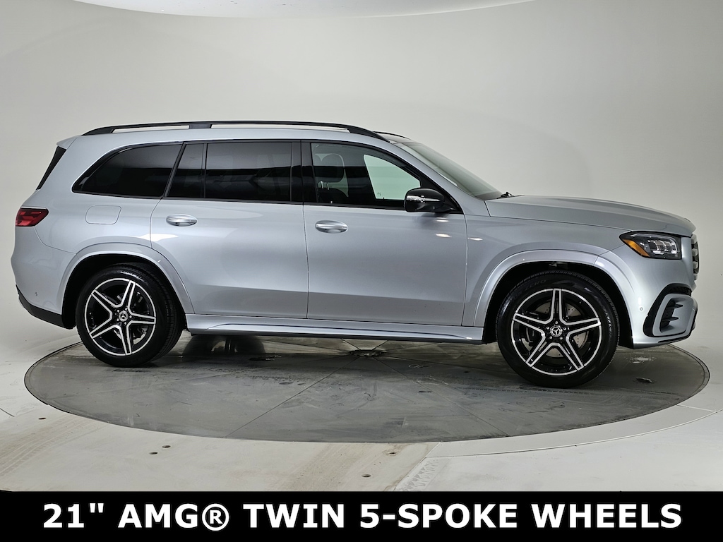 Cirrus Silver Metallic 2024 Mercedes-Benz GLS 450 4MATIC® 9-Speed Automatic 3.0L I6 5-Zone Climate Control, AMG® Bodystyling, AMG® Brushed Stainless Steel Sports Pedals, AMG® Floor Mats, AMG® Line Exterior, AMG® Rear Apron, AMG® Side Skirts in Body Color, AMG® Sport 3-Twin-Spoke Steering Wheel, Dark Chrome Grille w/4 Slats, Front and Rear Flared Wheel Arches in Body Color, Heated Steering Wheel, High-Gloss Black Elements, Large Front Brake System, Matte Black Roof Rails, Night Package, Soft-Close Doors, Trailer Hitch.