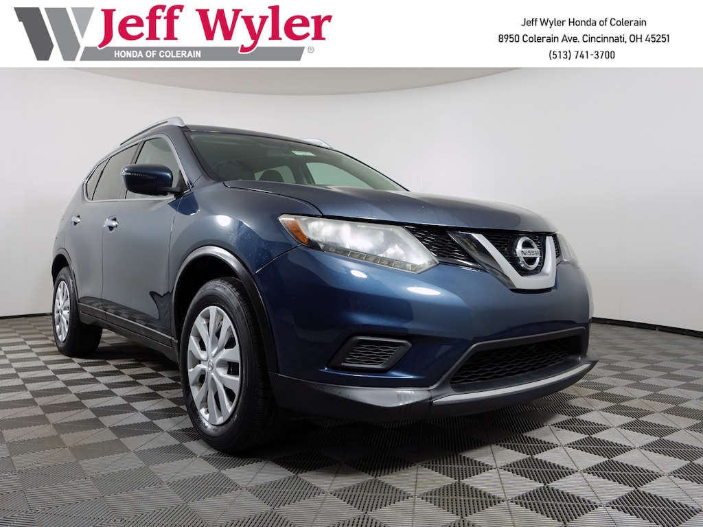 Jeff Wyler Honda of Colerain is honored to offer this stunning 2016 Nissan Rogue S in Arctic Blue Metallic. Well equipped with: Appearance Package (Body Color Outside Mirrors, Chrome Outside Door Handles, and Roof Rails), 4 Speakers, 4-Wheel Disc Brakes, 5.694 Axle Ratio, ABS brakes, Air Conditioning, AM/FM radio: SiriusXM, Anti-whiplash front head restraints, Brake assist, Bumpers: body-color, CD player, Chrome Rear Bumper Protector, Cloth Seat Trim, Driver door bin, Driver vanity mirror, Dual front impact airbags, Dual front side impact airbags, Electronic Stability Control, Floor Mats & 2-PC Cargo Area Protector, Four wheel independent suspension, Front anti-roll bar, Front Bucket Seats, Front Center Armrest w/Storage, Front reading lights, Illuminated entry, Low tire pressure warning, Occupant sensing airbag, Outside temperature display, Overhead airbag, Overhead console, Panic alarm, Passenger door bin, Passenger vanity mirror, Power door mirrors, Power steering, Power windows, Radio data system, Radio: AM/FM/CD/RDS/AUX NissanConnect, Rear anti-roll bar, Rear seat center armrest, Rear window defroster, Rear window wiper, Remote keyless entry, Security system, Speed control, Speed-sensing steering, Splash Guards, Split folding rear seat, Spoiler, Steering wheel mounted audio controls, Tachometer, Telescoping steering wheel, Tilt steering wheel, Traction control, Trip computer, Variably intermittent wipers, and Wheels: 17" Steel w/Full Covers.