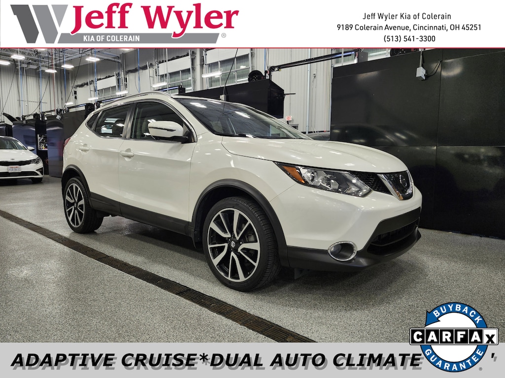 Jeff Wyler Kia of Colerain is proud to offer this superb 2018 Nissan Rogue Sport SL in Pearl White. 4-Wheel Disc Brakes, 6 Speakers, 6.39 Axle Ratio, ABS brakes, Air Conditioning, Alloy wheels, AM/FM radio: SiriusXM, Apple CarPlay/Android Auto, Automatic temperature control, Blind Spot Warning, Brake assist, Bumpers: body-color, Carpeted Cargo Area Protector & Floor Mats, CD player, Chrome Rear Bumper Protector, Delay-off headlights, Driver door bin, Driver vanity mirror, Dual front impact airbags, Dual front side impact airbags, Electronic Stability Control, Emergency communication system: NissanConnect Services, First Aid Kit, Four wheel independent suspension, Frameless Auto-Dimming Rearview Mirror, Front anti-roll bar, Front Bucket Seats, Front Center Armrest, Front dual zone A/C, Front fog lights, Front reading lights, Fully automatic headlights, Heated door mirrors, Heated front seats, Heated steering wheel, Illuminated entry, Leather Appointed Seat Trim, Low tire pressure warning, Navigation System, Occupant sensing airbag, Ordering Combination Code : -X, Outside temperature display, Overhead airbag, Overhead console, Panic alarm, Passenger door bin, Passenger vanity mirror, Power door mirrors, Power driver seat, Power steering, Power windows, Quick Comfort Heated Front Bucket Seats, Radio data system, Radio: AM/FM/CD/RDS/AUX NissanConnect w/Navigation, Rear anti-roll bar, Rear seat center armrest, Rear window defroster, Rear window wiper, Remote keyless entry, Roof rack: rails only, Security system, Speed control, Speed-Sensitive Wipers, Splash Guards, Split folding rear seat, Spoiler, Steering wheel mounted audio controls, Tachometer, Telescoping steering wheel, Tilt steering wheel, Traction control, Trip computer, Turn signal indicator mirrors, Variably intermittent wipers, and Wheels: 19" x 7.0" Aluminum Alloy Our PRE-OWNED vehicles are put through a rigorous 167- POINT QUALITY ASSURANCE INSPECTION along with an average amount of over $1,400.00 SPENT to recondition each vehicle so we can be sure to deliver you the highest quality vehicle like you deserve! ***ONLINE PRICE DOES NOT INCLUDE WYLER FAMILY FIRST PACKAGE***