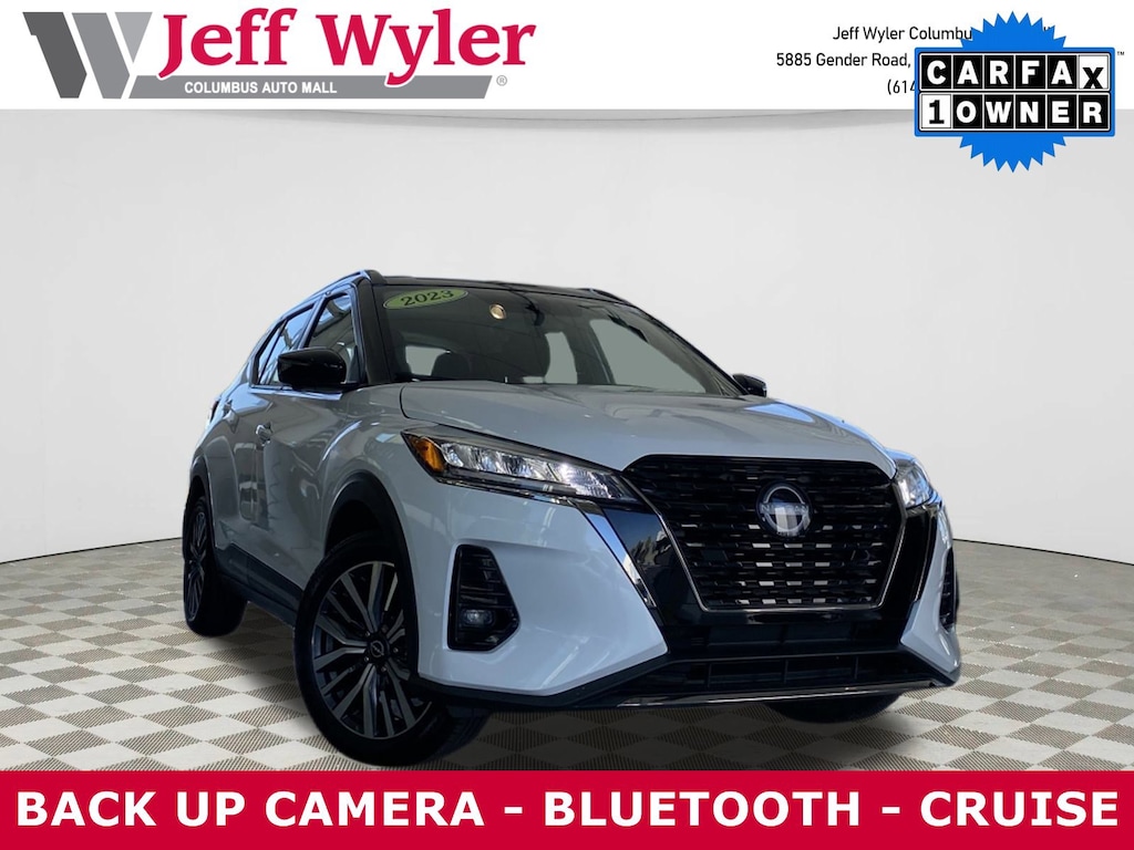 2023 Nissan Kicks Aspen White Tricoat/Super Black 1.6L 4-Cylinder DOHC 16V CVT with Xtronic SR FWD CARFAX One-Owner.Odometer is 13787 miles below market average! 31/36 City/Highway MPGCome visit the all new Jeff Wyler Chevrolet of Columbus the official Home of the Fresh Start Program! See how easy it is drive your new vehicle home today.Ask about available certifications.