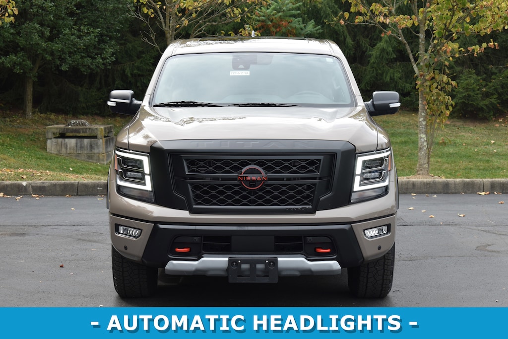 CARFAX One-Owner. ONE OWNER ACCIDENT FREE CARFAX, POWER SUNROOF/MOONROOF, REAR BACKUP CAMERA, HEATED SEATS, ALL WHEEL DRIVE, PASSED OUR SAFETY INSPECTION, SERVICE RECORDS AVAILABLE, 120V Outlet in Bed, 3.692 Axle Ratio, 4-Way Power Assist Seat, 4-Wheel Disc Brakes, 6 Speakers, ABS brakes, Air Conditioning, Alloy wheels, AM/FM radio: SiriusXM, Apple CarPlay/Android Auto, Auto High-beam Headlights, Auto-dimming Rear-View mirror, Auto-leveling suspension, Automatic temperature control, Bed Assist Grip, Blind Spot Warning, Brake assist, Cloth Seat Trim w/Vinyl Bolsters, Compass, Delay-off headlights, Driver & Passenger Ventilated Front Seats, Driver door bin, Driver Power Folding Auto Dimming Outside Mirrors, Driver vanity mirror, Dual front impact airbags, Dual front side impact airbags, Dual Panel Panoramic Moonroof w/Tilt & Slide, Electronic Stability Control, Emergency communication system: NissanConnect Services, Front & Rear Parking Sensors, Front anti-roll bar, Front Bucket Seats, Front Captain's Seats, Front Center Armrest, Front dual zone A/C, Front fog lights, Front reading lights, Front wheel independent suspension, Fully automatic headlights, Garage door transmitter: HomeLink, Heated door mirrors, Heated Driver & Passenger Seat, Heated Rear Seats, Heated Tilt/Telescoping Steering Wheel, Illuminated entry, Intelligent Around View Monitor (I-AVM), Knee airbag, Leather Seat Trim, Leather steering wheel, LED Tailgate Area Illumination, LED Under Rail Bed Lighting, Low tire pressure warning, Memory Driver Seat w/Auto Entry/Exit Feature, Navigation system: NissanConnect with Navigation and Services, Occupant sensing airbag, Outside temperature display, Overhead airbag, Overhead console, Panic alarm, Passenger door bin, Passenger vanity mirror, Power door mirrors, Power driver seat, Power steering, Power windows, PRO-4X Badged Floor Mats, PRO-4X Convenience Package, PRO-4X Illuminated Kick Plate, PRO-4X Moonroof Package, PRO-4X Mud Flaps, PRO-4X Rugged Step Boards, PRO-4X Utility Package, Proximity Activation, Radio data system, Radio: NissanConnect w/Navigation, Rain sensing wipers, Rear anti-roll bar, Rear Bumper Step w/Electronic Tailgate Lock, Rear Parking Sensors, Rear reading lights, Rear seat center armrest, Rear step bumper, Rear Underseat Storage, Rear window defroster, Remote Engine Start on Key Fob, Remote keyless entry, Security system, Side Turn Signal Lamps on Mirror Housing, Speed control, Speed-sensing steering, Speed-Sensitive Wipers, Split folding rear seat, Steering wheel mounted audio controls, Tachometer, Telescoping steering wheel, Tilt steering wheel, Traction control, Trailer Light Check Function On Key Fob, Trip computer, Utilitrack System w/2 Tie-Down Cleats, Variably intermittent wipers, Voltmeter, Wheels: 18" x 8" Painted Dark Finish Alloy. Odometer is 10906 miles below market average!Used vehicles 10 years of age or newer with less than 100,000 miles are eligible for the Wyler Assurance Program, but eligible vehicles must pass our reconditioning process and multi-point inspection. Provided the vehicle passes inspection, vehicles will be eligible for the 6 month/6,000 mile limited warranty. The 6 month/6,000 mile limited warranty is NOT available on AS-IS vehicles, wholesale vehicles, lease buyback/pass-thru vehicles or un-inspected vehicles. Note that this program can also apply to vehicles where the remaining factory coverage is less than 6 months or 6,000 miles. Please check the Federal Trade Commission (FTC) Buyers guide on the vehicle for full details as to whether or not warranty coverage may apply. Contact Dealer for additional details. The Wyler Assurance 6 month/6,000 Mile limited warranty ends 6 months from the date of the Retail Purchase Agreement (BUYERS ORDER) or when the vehicle's odometer registers 6,000 additional miles to the mileage listed on the BUYERS ORDER, whichever comes first. Your Deductible - The warranty holder on your contract pays the first $100 of each covered repair