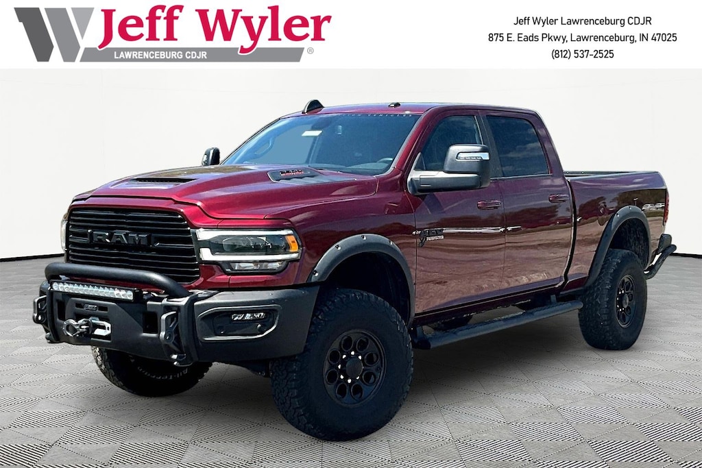 Jeff Wyler Chrysler Dodge Jeep of Lawrenceburg is very proud to offer this outstanding 2024 Ram 2500 Laramie in Delmonico Red Pearlcoat. Bed Utility Group (LED Bed Lighting, MOPAR Deployable Bed Step, and MOPAR Spray In Bedliner), Heavy Duty Snow Plow Prep Group (220 Amp Alternator), Laramie Level B Equipment Group (12" Touchscreen Display, 17 Speaker harman/kardon Premium Sound, 2nd Row In Floor Storage Bins, 4G LTE Wi-Fi Hot Spot, Alexa Built-In, Apple CarPlay, Auto Adjust In Reverse Exterior Mirrors, Auto Dim Exterior Mirror, Auto High Beam Headlamp Control, Auto Power-Folding Mirrors, Auto-Dimming Exterior Passenger Mirror, Blind Spot & Cross Path Detection, Center Hub, Chrome Exterior Mirrors, Connected Travel & Traffic Services, Connectivity - US/Canada, Disassociated Touchscreen Display, Exterior Mirrors Courtesy Lamps, Exterior Mirrors w/Heating Element, Exterior Mirrors w/Memory, Exterior Mirrors w/Supplemental Signals, Foam Bottle Insert (Door Trim Panel), For Details, Visit DriveUconnect.com, For More Info, Call 800-643-2112, Forward & Reverse Utility Lights, Front LED Fog Lamps, Global Telematics Box Module (TBM), Google Android Auto, GPS Antenna Input, GPS Navigation, HD Radio, Heated Second Row Seats, Integrated Voice Command w/Bluetooth, LED Reflector Headlamps, LED Tail Lamps, Mirror Running Lights, Off-Road Information Pages, ParkSense Front/Rear Park Assist System, Power Adjust Mirrors, Power Adjustable Convex Aux Mirrors, Power Adjustable Pedals w/Memory, Power Heated Fold Telescopic Mirrors w/Memory, Power Telescoping Mirrors, Radio: Uconnect 5 Nav w/12.0" Display, Rain Sensitive Windshield Wipers, Rear Power Sliding Window, Rear Window Defroster, Remote Tailgate Release, Selectable Tire Fill Alert, SiriusXM Radio Service, SiriusXM w/360L, Trailer Tow Pages, and Wheels: 18" x 8.0" Polished Aluminum), Night Edition (Black Exterior Truck Badging, Black Headlamp Bezels, Black Interior Accents, Black Ram Head Tailgate Badge, Black Tail Lamp Bezels, Black Wheel Center Hub, Body Color Grille Surround, Gloss Black Grille Billets/Accents, Sport Performance Hood, and Wheels: 20" x 8.0" Black Painted Aluminum), Quick Order Package 2HH Laramie, 10 Speakers, 115V Auxiliary Rear Power Outlet, 2 Way Rear Headrest Seat, 3.73 Axle Ratio, 4 Way Front Headrests, 4-Wheel Disc Brakes, 5th Wheel/Gooseneck Towing Prep Group, ABS brakes, Active Noise Control System, Air Conditioning, Alloy wheels, AM/FM radio: SiriusXM with 360L, Apple CarPlay/Android Auto, Automatic temperature control, Brake assist, Bumpers: body-color, Compass, Delay-off headlights, Driver door bin, Driver vanity mirror, Dual front impact airbags, Dual front side impact airbags, Electronic Stability Control, Electronically Controlled Throttle, Front anti-roll bar, Front Center Armrest w/Storage, Front dual zone A/C, Front reading lights, Front Seat Back Map Pockets, Fully automatic headlights, Garage door transmitter, Heated door mirrors, Heated Front Seats, Heated front seats, Heated Steering Wheel, Heated steering wheel, Illuminated entry, Leather steering wheel, Leather Trim 40/20/40 Bench Seat, Low tire pressure warning, Navigation System, Occupant sensing airbag, Outside temperature display, Overhead airbag, Overhead console, Panic alarm, ParkView Rear Back-Up Camera, Passenger door bin, Passenger vanity mirror, Power 2-Way Driver Lumbar Adjust, Power 2-Way Passenger Lumbar Adjust, Power Adjust 8-Way Driver Seat, Power Adjust 8-Way Front Passenger Seat, Power door mirrors, Power driver seat, Power passenger seat, Power steering, Power Sunroof, Power windows, Radio data system, Rear 60/40 Folding Seat, Rear anti-roll bar, Rear reading lights, Rear seat center armrest, Rear step bumper, Rear window defroster, Remote keyless entry, Security system, Speed control, Split folding rear seat, Steering wheel mounted audio controls, Tachometer, Tilt steering wheel, Tip Start, Tow Hooks, Traction control, Trip computer, Turn signal indicator mirrors, Variably interm
