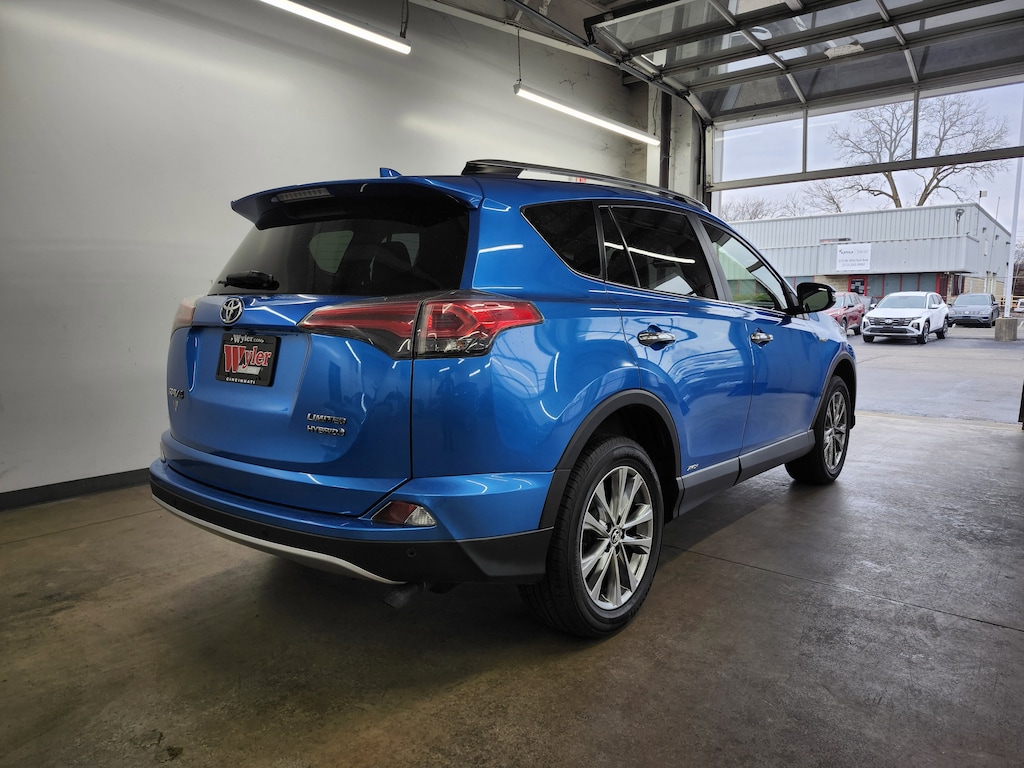Jeff Wyler Superior Hyundai is honored to offer this good-looking 2018 Toyota RAV4 Hybrid Limited in Blue. Well equipped with: 2.5L 4-Cylinder, 4-Wheel Disc Brakes, 6 Speakers, ABS brakes, Air Conditioning, Alloy wheels, AM/FM radio: SiriusXM, Auto High-beam Headlights, Auto-dimming Rear-View mirror, Automatic temperature control, Axle Ratio: 3.542, Brake assist, Bumpers: body-color, Chrome wheels, Compass, Driver door bin, Driver vanity mirror, Dual front impact airbags, Dual front side impact airbags, Electronic Stability Control, Exterior Parking Camera Rear, Four wheel independent suspension, Front anti-roll bar, Front Bucket Seats, Front Center Armrest, Front dual zone A/C, Front fog lights, Front reading lights, Fully automatic headlights, Garage door transmitter: HomeLink, Heated door mirrors, Heated front seats, Heated Front Sport Seats, Illuminated entry, Knee airbag, Leather Shift Knob, Leather steering wheel, Low tire pressure warning, Memory seat, Navigation System, Occupant sensing airbag, Outside temperature display, Overhead airbag, Overhead console, Panic alarm, Passenger door bin, Passenger vanity mirror, Power door mirrors, Power driver seat, Power Liftgate, Power moonroof, Power steering, Power windows, Radio data system, Radio: Entune Premium Audio with Navigation, Rear anti-roll bar, Rear seat center armrest, Rear window defroster, Rear window wiper, Remote keyless entry, Roof rack, SofTex Seat Trim, Speed control, Speed-sensing steering, Split folding rear seat, Spoiler, Steering wheel mounted audio controls, Telescoping steering wheel, Tilt steering wheel, Traction control, Trip computer, Turn signal indicator mirrors, Variably intermittent wipers, and Wheels: 18" x 7.5J 5-Spoke Superchrome Alloy. Clean CARFAX. This sales price excludes tax, title, and dealer fees. While every reasonable effort is made to ensure the accuracy of this information, we are not responsible for any errors or omissions contained on these pages. Used vehicles 10 years of age or newer with less than 100,000 miles are eligible for the Wyler Assurance Program, but eligible vehicles must pass our reconditioning process and multi-point inspection. Provided the vehicle passes inspection, vehicles will be eligible for the 6 month/6,000 mile limited warranty. The 6 month/6,000 mile limited warranty is NOT available on AS-IS vehicles, wholesale vehicles, lease buyback/pass-thru vehicles or un-inspected vehicles. Note that this program can also apply to vehicles where the remaining factory coverage is less than 6 months or 6,000 miles. Please check the Federal Trade Commission (FTC) Buyers guide on the vehicle for full details as to whether or not warranty coverage may apply. Contact Dealer for additional details. The Wyler Assurance 6 month/6,000 Mile limited warranty ends 6 months from the date of the Retail Purchase Agreement (BUYERS ORDER) or when the vehicle's odometer registers 6,000 additional miles to the mileage listed on the BUYERS ORDER, whichever comes first.Your Deductible - The warranty holder on your contract pays the first $100 of each covered repair.
