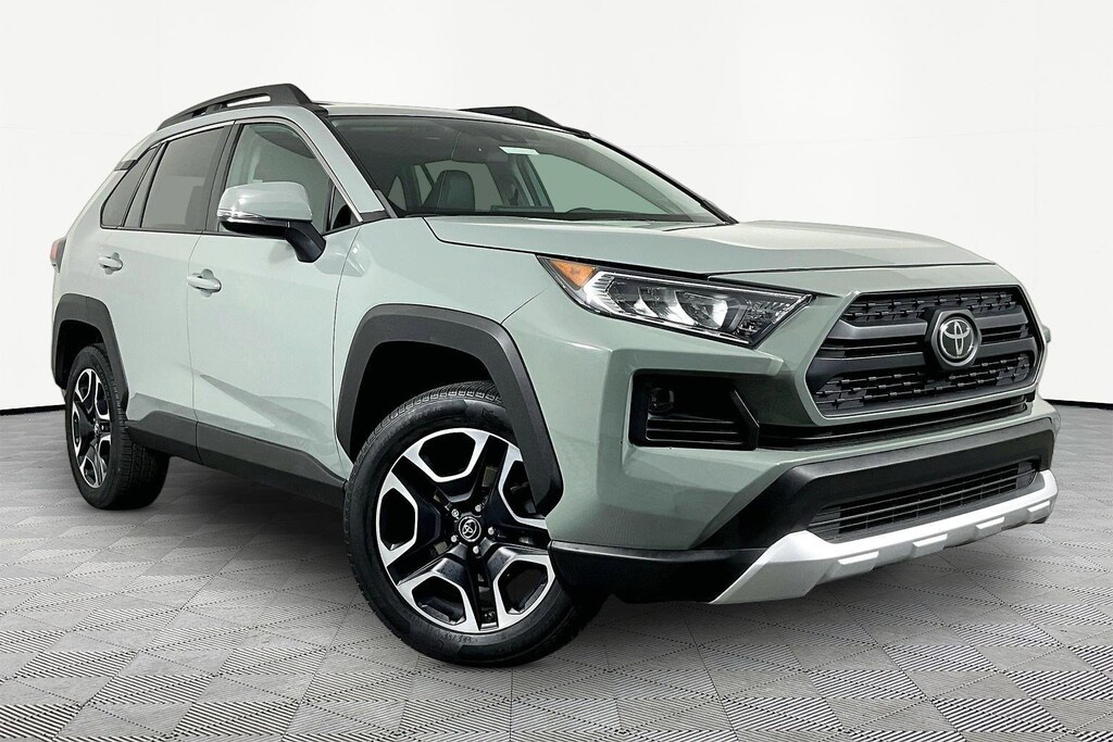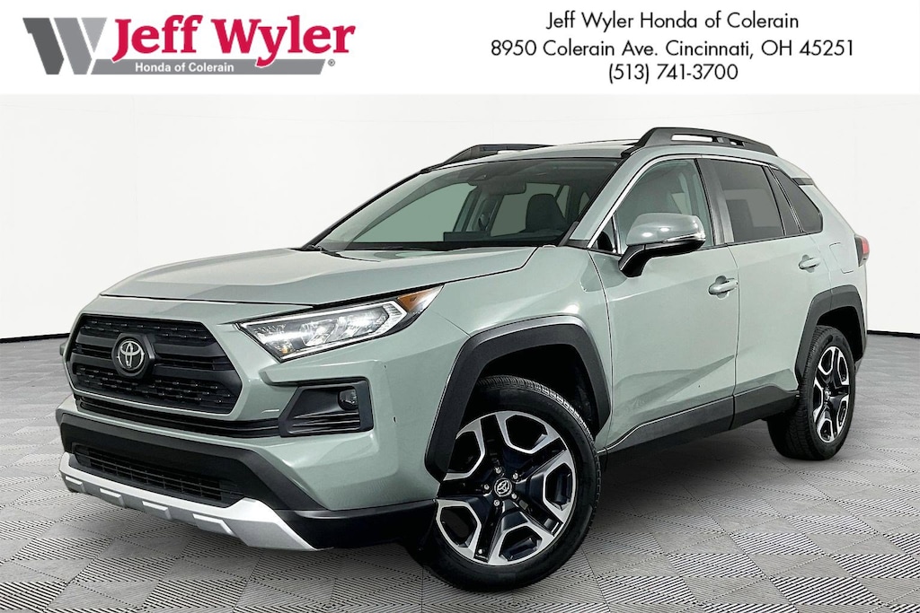 Jeff Wyler Honda of Colerain is pleased to offer this beautiful-looking 2019 Toyota RAV4 Adventure in Lunar Rock. Well equipped with: 4-Wheel Disc Brakes, 6 Speakers, ABS brakes, Air Conditioning, Alloy wheels, AM/FM radio: SiriusXM, Apple CarPlay, Auto High-beam Headlights, Automatic temperature control, Axle Ratio: 3.177, Brake assist, Bumpers: body-color, Delay-off headlights, Driver door bin, Driver vanity mirror, Dual front impact airbags, Dual front side impact airbags, Electronic Stability Control, Emergency communication system: Entune Safety Connect, Exterior Parking Camera Rear, Four wheel independent suspension, Front anti-roll bar, Front Bucket Seats, Front Center Armrest, Front dual zone A/C, Front fog lights, Front reading lights, Fully automatic headlights, Heated door mirrors, Illuminated entry, Knee airbag, Low tire pressure warning, Occupant sensing airbag, Outside temperature display, Overhead airbag, Overhead console, Panic alarm, Passenger door bin, Passenger vanity mirror, Power door mirrors, Power driver seat, Power Liftgate, Power steering, Power windows, Radio data system, Radio: Entune 3.0 Audio Plus, Rear anti-roll bar, Rear seat center armrest, Rear window defroster, Rear window wiper, Remote keyless entry, Roof rack: rails only, Security system, SofTex Seat Trim, Speed control, Speed-sensing steering, Split folding rear seat, Spoiler, Steering wheel mounted audio controls, Tachometer, Telescoping steering wheel, Tilt steering wheel, Traction control, Trip computer, Turn signal indicator mirrors, Variably intermittent wipers, and Wheels: 19" x 7.5J Alloy.