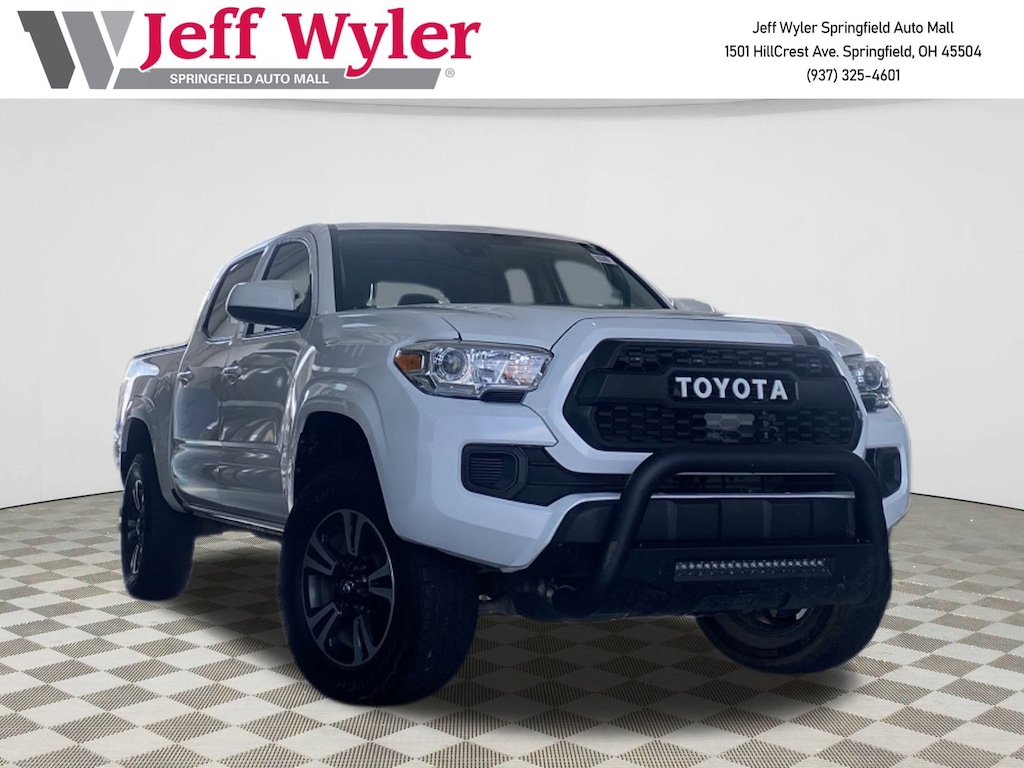 Jeff Wyler Springfield Auto Mall is very proud to offer this terrific-looking 2021 Toyota Tacoma in White. Well equipped with: ABS brakes, Air Conditioning, AM/FM radio: SiriusXM, Anti-whiplash front head restraints, Apple CarPlay/Android Auto, Auto High-beam Headlights, Automatic temperature control, Brake assist, Bumpers: body-color, Driver door bin, Dual front impact airbags, Dual front side impact airbags, Electronic Stability Control, Emergency communication system: Safety Connect with 1-year trial, Front anti-roll bar, Front Bucket Seats, Front Center Armrest, Front dual zone A/C, Front reading lights, Front wheel independent suspension, Illuminated entry, Knee airbag, Low tire pressure warning, Occupant sensing airbag, Outside temperature display, Overhead airbag, Overhead console, Passenger door bin, Power door mirrors, Power steering, Power windows, Rear step bumper, Speed control, Speed-sensing steering, Split folding rear seat, Steering wheel mounted audio controls, Tachometer, Telescoping steering wheel, Tilt steering wheel, Traction control, and Variably intermittent wipers. Ask about available certifications. Used vehicles 10 years of age or newer with less than 100,000 miles are eligible for the Wyler Assurance Program, but eligible vehicles must pass our reconditioning process and multi-point inspection. Provided the vehicle passes inspection, vehicles will be eligible for the 6 month/6,000 mile limited warranty. The 6 month/6,000 mile limited warranty is NOT available on AS-IS vehicles, wholesale vehicles, lease buyback/pass-thru vehicles or un-inspected vehicles. Note that this program can also apply to vehicles where the remaining factory coverage is less than 6 months or 6,000 miles. Please check the Federal Trade Commission (FTC) Buyers guide on the vehicle for full details as to whether or not warranty coverage may apply. Contact Dealer for additional details. The Wyler Assurance 6 month/6,000 Mile limited warranty ends 6 months from the date of the Retail Purchase Agreement (BUYERS ORDER) or when the vehicle's odometer registers 6,000 additional miles to the mileage listed on the BUYERS ORDER, whichever comes first. Your Deductible - The warranty holder on your contract pays the first $100 of each covered repair.