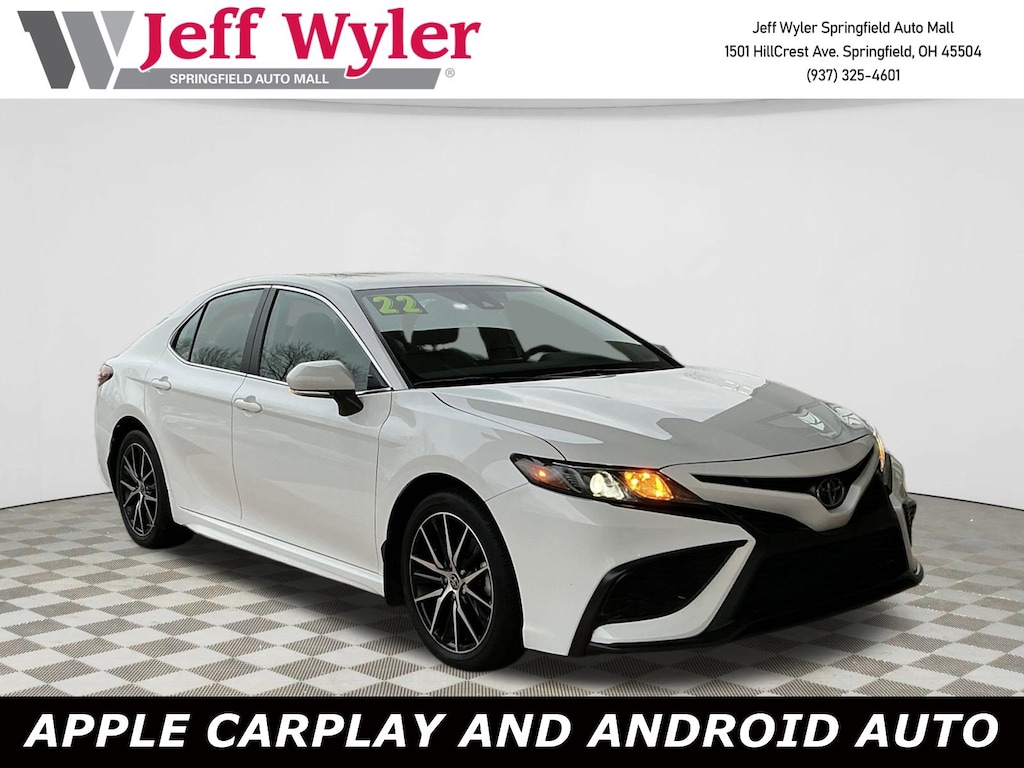Jeff Wyler Springfield Auto Mall is pleased to offer this superb-looking 2022 Toyota Camry SE in Ice. Well equipped with: ABS brakes, Active Cruise Control, Alloy wheels, Electronic Stability Control, Front dual zone A/C, Heated door mirrors, Illuminated entry, Low tire pressure warning, Remote keyless entry, Traction control, 4-Wheel Disc Brakes, 6 Speakers, Air Conditioning, AM/FM radio: SiriusXM, Apple CarPlay/Android Auto, Auto High-beam Headlights, Automatic temperature control, Brake assist, Bumpers: body-color, Delay-off headlights, Driver door bin, Driver vanity mirror, Dual front impact airbags, Dual front side impact airbags, Emergency communication system: Safety Connect with 1-year trial, Exterior Parking Camera Rear, Fabric Seat Trim w/Sport SofTex, Four wheel independent suspension, Front anti-roll bar, Front Bucket Seats, Front Center Armrest, Front reading lights, Fully automatic headlights, Knee airbag, Occupant sensing airbag, Outside temperature display, Overhead airbag, Overhead console, Panic alarm, Passenger door bin, Passenger vanity mirror, Power door mirrors, Power driver seat, Power steering, Power windows, Radio data system, Radio: AM/FM Audio System, Rear anti-roll bar, Rear seat center armrest, Rear side impact airbag, Rear window defroster, Security system, Speed control, Speed-sensing steering, Split folding rear seat, Spoiler, Steering wheel mounted audio controls, Tachometer, Telescoping steering wheel, Tilt steering wheel, Trip computer, Turn signal indicator mirrors, Variably intermittent wipers, and Wheels: 8.0J x 18" Black Machined-Finish Alloy. Ask about available certifications. Used vehicles 10 years of age or newer with less than 100,000 miles are eligible for the Wyler Assurance Program, but eligible vehicles must pass our reconditioning process and multi-point inspection. Provided the vehicle passes inspection, vehicles will be eligible for the 6 month/6,000 mile limited warranty. The 6 month/6,000 mile limited warranty is NOT available on AS-IS vehicles, wholesale vehicles, lease buyback/pass-thru vehicles or un-inspected vehicles. Note that this program can also apply to vehicles where the remaining factory coverage is less than 6 months or 6,000 miles. Please check the Federal Trade Commission (FTC) Buyers guide on the vehicle for full details as to whether or not warranty coverage may apply. Contact Dealer for additional details. The Wyler Assurance 6 month/6,000 Mile limited warranty ends 6 months from the date of the Retail Purchase Agreement (BUYERS ORDER) or when the vehicle's odometer registers 6,000 additional miles to the mileage listed on the BUYERS ORDER, whichever comes first. Your Deductible - The warranty holder on your contract pays the first $100 of each covered repair.