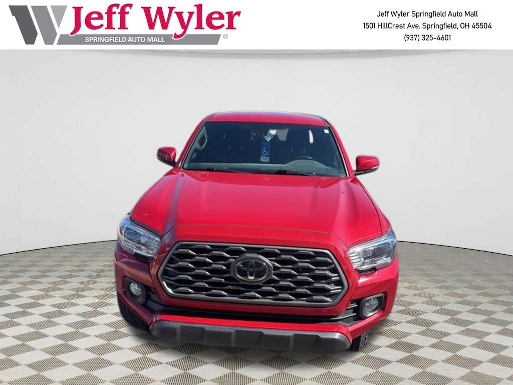 Jeff Wyler Springfield Auto Mall is pumped up to offer this superb 2023 Toyota Tacoma in Red. Well equipped with: 120V/400W Deck Mounted AC Power, ABS brakes, Air Conditioning, Alloy wheels, AM/FM radio: SiriusXM, Anti-whiplash front head restraints, Apple CarPlay/Android Auto, Auto High-beam Headlights, Auto-dimming Rear-View mirror, Auto-Dimming Rearview Mirror w/HomeLink, Automatic temperature control, Blind Spot Monitor w/Rear Cross Traffic Alert, Brake assist, Bumpers: body-color, Driver door bin, Dual front impact airbags, Dual front side impact airbags, Electronic Stability Control, Emergency communication system: Safety Connect (1-year trial), Engine Immobilizer, Exterior Parking Camera Rear, Front anti-roll bar, Front Bucket Seats, Front Center Armrest, Front dual zone A/C, Front fog lights, Front reading lights, Front wheel independent suspension, Garage door transmitter: HomeLink, Heated door mirrors, Illuminated entry, Knee airbag, Leather Shift Knob, Low tire pressure warning, Occupant sensing airbag, Outside temperature display, Overhead airbag, Overhead console, Panic alarm, Passenger door bin, Power door mirrors, Power driver seat, Power Sliding Rear Window w/Privacy Glass, Power steering, Power windows, Rear Parking Assist Sonar, Rear step bumper, Remote keyless entry, Security system, Speed control, Speed-sensing steering, Split folding rear seat, Steering wheel mounted audio controls, Tachometer, Telescoping steering wheel, Tilt steering wheel, Traction control, Trip computer, Turn signal indicator mirrors, and Variably intermittent wipers. Ask about available certifications. Used vehicles 10 years of age or newer with less than 100,000 miles are eligible for the Wyler Assurance Program, but eligible vehicles must pass our reconditioning process and multi-point inspection. Provided the vehicle passes inspection, vehicles will be eligible for the 6 month/6,000 mile limited warranty. The 6 month/6,000 mile limited warranty is NOT available on AS-IS vehicles, wholesale vehicles, lease buyback/pass-thru vehicles or un-inspected vehicles. Note that this program can also apply to vehicles where the remaining factory coverage is less than 6 months or 6,000 miles. Please check the Federal Trade Commission (FTC) Buyers guide on the vehicle for full details as to whether or not warranty coverage may apply. Contact Dealer for additional details. The Wyler Assurance 6 month/6,000 Mile limited warranty ends 6 months from the date of the Retail Purchase Agreement (BUYERS ORDER) or when the vehicle's odometer registers 6,000 additional miles to the mileage listed on the BUYERS ORDER, whichever comes first. Your Deductible - The warranty holder on your contract pays the first $100 of each covered repair.