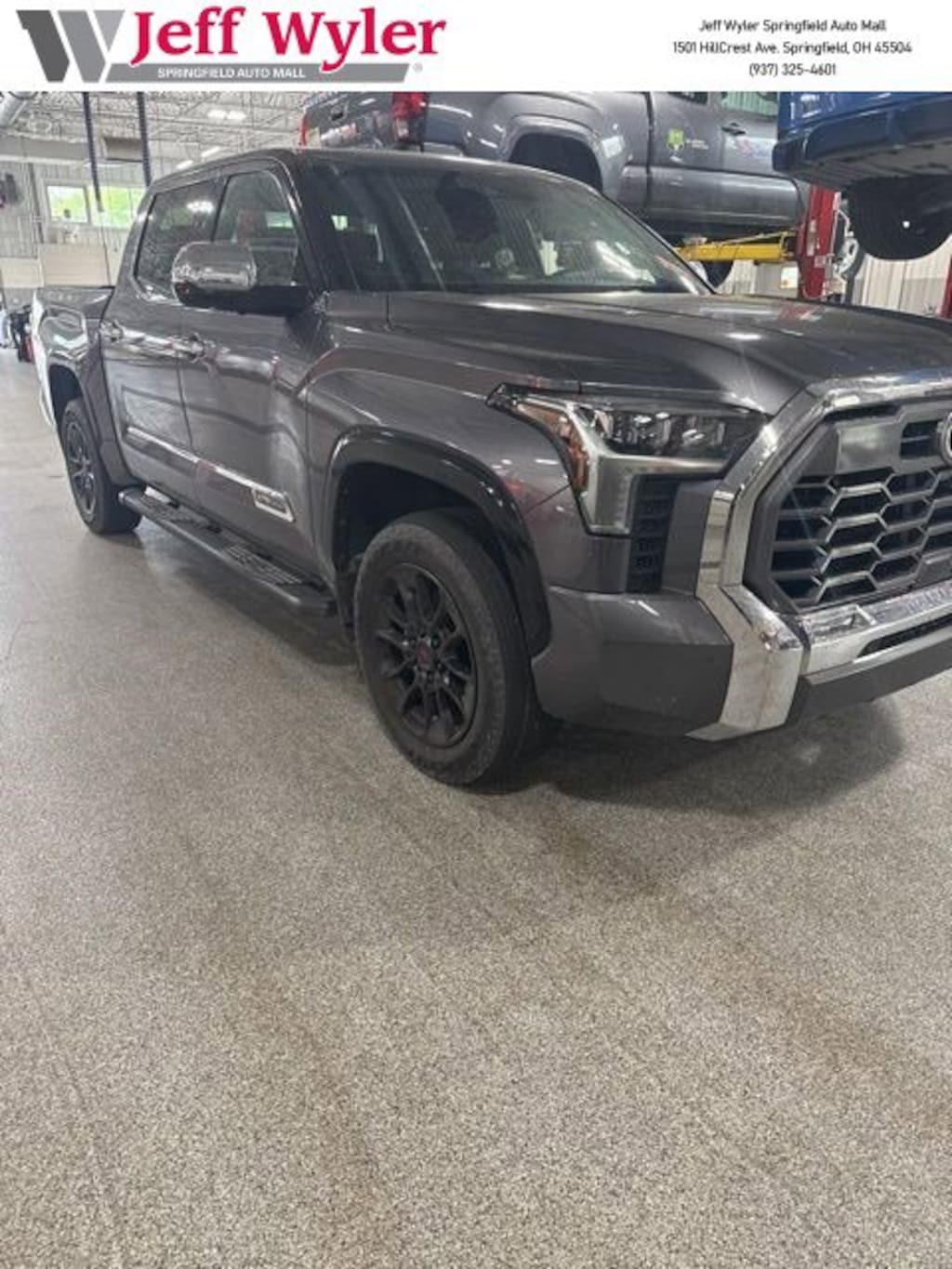 Jeff Wyler Springfield Auto Mall is excited to offer this wonderful 2023 Toyota Tundra 1794 in Magnetic Gray Metallic. Well equipped with: TRD Off-Road Package (Bedside TRD Off Road Decal, Black Grille w/Chrome Surround, Chrome Exhaust Tail Pipe & Diffuser, Front & Rear Mud Guards, Multi-Terrain Back Monitor, TRD Off-Road Suspension w/Bilstein Shocks, and Wheels: 20" Black Alloy), 10-Way Pwr Adj Heated and Ventilated Front Seats, 12 Speakers, 3.31 Axle Ratio, 4-Wheel Disc Brakes, ABS brakes, Air Conditioning, Alloy wheels, AM/FM radio: SiriusXM, Apple CarPlay/Android Auto, Auto High-beam Headlights, Auto-dimming door mirrors, Auto-dimming Rear-View mirror, Automatic temperature control, Bed Step (TMS), Black Dual-Step Running Board (TMS), Black Tailgate Insert (TMS), Blind Spot Monitor, Brake assist, Bumpers: body-color, Chrome Plated Power Folding Outside Mirrors, Delay-off headlights, Driver door bin, Driver vanity mirror, Dual front impact airbags, Dual front side impact airbags, Electronic Stability Control, Emergency communication system: Safety Connect (10-year trial), Front anti-roll bar, Front Bucket Seats, Front Center Armrest, Front dual zone A/C, Front fog lights, Front reading lights, Front wheel independent suspension, Fully automatic headlights, Garage door transmitter: HomeLink, Heated door mirrors, Heated front seats, Heated rear seats, Heated steering wheel, Illuminated entry, Knee airbag, Leather Seat Trim, Leather Shift Knob, Low tire pressure warning, Memory seat, Navigation System, Occupant sensing airbag, Outside temperature display, Overhead airbag, Overhead console, Panic alarm, Panoramic View Back Monitor, Passenger door bin, Passenger vanity mirror, Power door mirrors, Power driver seat, Power moonroof, Power passenger seat, Power steering, Power windows, Radio data system, Radio: Audio Multimedia System, Rain sensing wipers, Rear reading lights, Rear seat center armrest, Rear step bumper, Rear window defroster, Remote keyless entry, Safety Connect, Security system, Speed control, Speed-sensing steering, Split folding rear seat, Stainless Steel Door Edge Guard (TMS), Steering wheel memory, Steering wheel mounted audio controls, Tachometer, Telescoping steering wheel, Tilt steering wheel, Traction control, TRD Front Skid Plate, Trip computer, Turn signal indicator mirrors, USB Phone Charging Cable Kit (TMS), Variably intermittent wipers, Ventilated front seats, Ventilated rear seats, Voltmeter, and Wheels: 20" Machined Finish Alloy. Ask about available certifications. Used vehicles 10 years of age or newer with less than 100,000 miles are eligible for the Wyler Assurance Program, but eligible vehicles must pass our reconditioning process and multi-point inspection. Provided the vehicle passes inspection, vehicles will be eligible for the 6 month/6,000 mile limited warranty. The 6 month/6,000 mile limited warranty is NOT available on AS-IS vehicles, wholesale vehicles, lease buyback/pass-thru vehicles or un-inspected vehicles. Note that this program can also apply to vehicles where the remaining factory coverage is less than 6 months or 6,000 miles. Please check the Federal Trade Commission (FTC) Buyers guide on the vehicle for full details as to whether or not warranty coverage may apply. Contact Dealer for additional details. The Wyler Assurance 6 month/6,000 Mile limited warranty ends 6 months from the date of the Retail Purchase Agreement (BUYERS ORDER) or when the vehicle's odometer registers 6,000 additional miles to the mileage listed on the BUYERS ORDER, whichever comes first. Your Deductible - The warranty holder on your contract pays the first $100 of each covered repair.