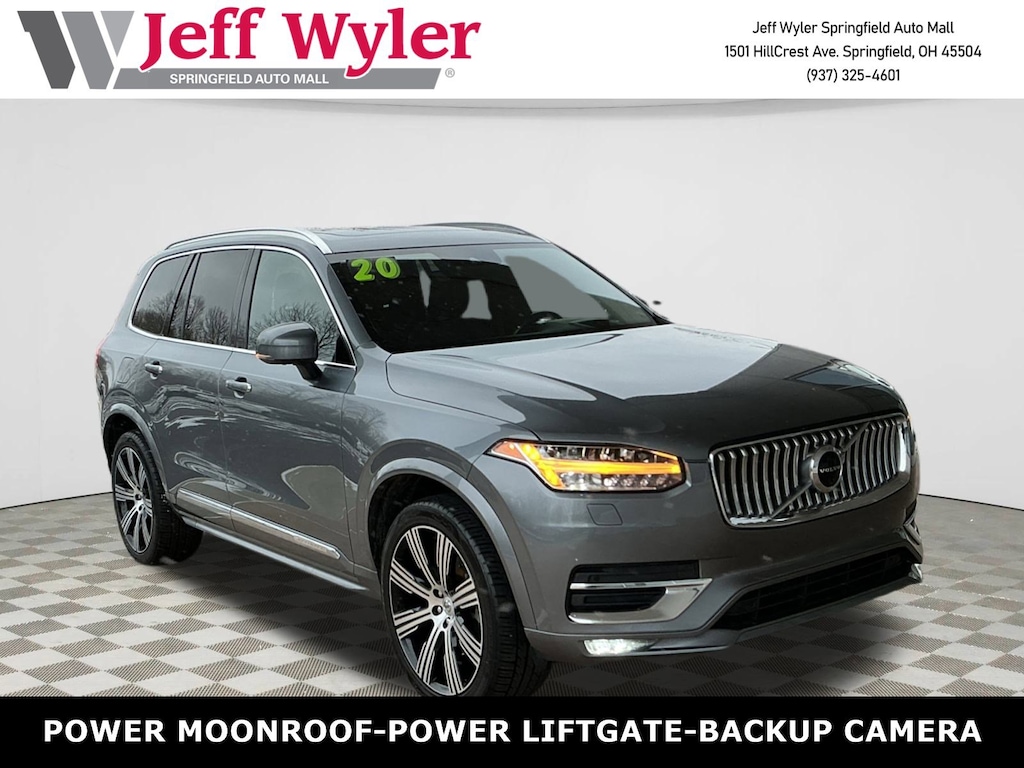 Jeff Wyler Springfield Auto Mall is pleased to offer this great-looking 2020 Volvo XC90 T6 Inscription in Gray Metallic. Well equipped with: 14 Speakers, 3rd row seats: bucket, 4-Wheel Disc Brakes, ABS brakes, Air Conditioning, Alloy wheels, AM/FM radio: SiriusXM, Anti-whiplash front head restraints, Apple CarPlay/Android Auto, Auto High-beam Headlights, Auto-dimming door mirrors, Auto-dimming Rear-View mirror, Automatic temperature control, Bodyside moldings, Brake assist, Bumpers: body-color, Delay-off headlights, Driver door bin, Driver vanity mirror, Dual front impact airbags, Dual front side impact airbags, Electronic Stability Control, Emergency communication system: Volvo On-Call, Exterior Parking Camera Rear, Four wheel independent suspension, Front anti-roll bar, Front Bucket Seats, Front Center Armrest w/Storage, Front dual zone A/C, Front fog lights, Front reading lights, Fully automatic headlights, Garage door transmitter: HomeLink, Genuine wood dashboard insert, Genuine wood door panel insert, harman/kardon® Speakers, Heated & Ventilated Front Comfort Seats, Heated door mirrors, Heated front seats, Illuminated entry, Knee airbag, Leather Shift Knob, Low tire pressure warning, Memory seat, Nappa Leather Seating Surfaces, Navigation System, Occupant sensing airbag, Outside temperature display, Overhead airbag, Panic alarm, Passenger door bin, Passenger vanity mirror, Power door mirrors, Power driver seat, Power Liftgate, Power moonroof, Power passenger seat, Power steering, Power windows, Premium audio system: Sensus Connect, Radio data system, Radio: harman/kardon Premium Sound w/Sensus Nav Pro, Rain sensing wipers, Rear air conditioning, Rear anti-roll bar, Rear dual zone A/C, Rear fog lights, Rear reading lights, Rear window defroster, Rear window wiper, Remote keyless entry, Roof rack: rails only, Security system, Speed control, Speed-sensing steering, Split folding rear seat, Spoiler, Steering wheel mounted audio controls, Tachometer, Telescoping steering wheel, Tilt steering wheel, Traction control, Trip computer, Turn signal indicator mirrors, Variably intermittent wipers, Ventilated front seats, Wheels: 20" 10-Spoke Black Diamond Cut Alloy, and Wheels: 21" 8-Multi Spoke Black Diamond-Cut Alloy. Ask about available certifications. Used vehicles 10 years of age or newer with less than 100,000 miles are eligible for the Wyler Assurance Program, but eligible vehicles must pass our reconditioning process and multi-point inspection. Provided the vehicle passes inspection, vehicles will be eligible for the 6 month/6,000 mile limited warranty. The 6 month/6,000 mile limited warranty is NOT available on AS-IS vehicles, wholesale vehicles, lease buyback/pass-thru vehicles or un-inspected vehicles. Note that this program can also apply to vehicles where the remaining factory coverage is less than 6 months or 6,000 miles. Please check the Federal Trade Commission (FTC) Buyers guide on the vehicle for full details as to whether or not warranty coverage may apply. Contact Dealer for additional details. The Wyler Assurance 6 month/6,000 Mile limited warranty ends 6 months from the date of the Retail Purchase Agreement (BUYERS ORDER) or when the vehicle's odometer registers 6,000 additional miles to the mileage listed on the BUYERS ORDER, whichever comes first. Your Deductible - The warranty holder on your contract pays the first $100 of each covered repair.